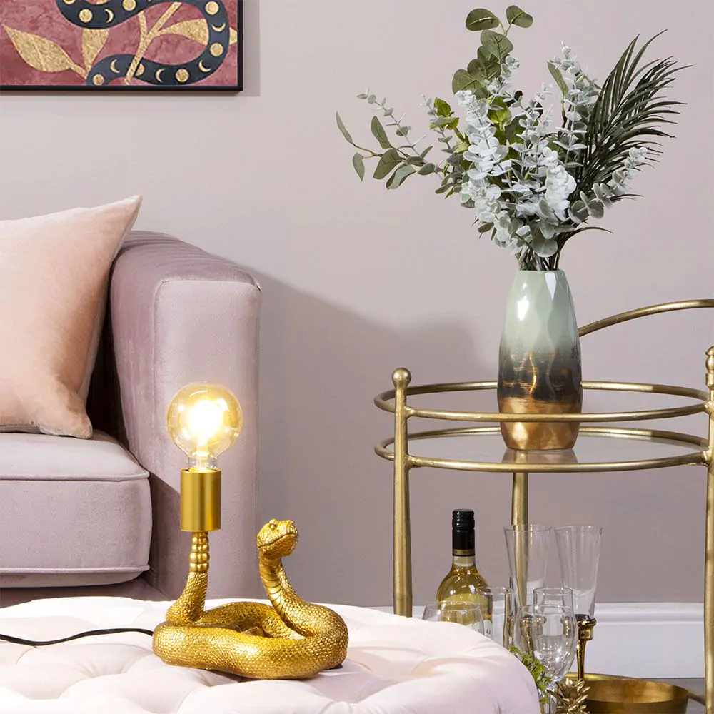 Bring a quirky look to your interiors with Cyril Snake; an eye-catching table lamp that will illuminate your home. The golden coiled body is beautifully detailed and creates a vintage aesthetic. Cyril Snake is perfect to feature on a side table in your living room if you want to add a unique accent to your home décor. This table lamp supports a lovely, exposed bulb which projects a stunning light that will brighten up your home.