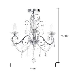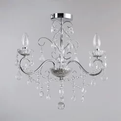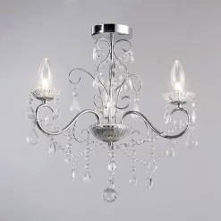 This small 3 light ceiling chandelier is a practical, yet immensely elegant fitting to bring into your home’s designs. The chrome finish gives a modern look to the fitting, whilst the arrangement of crystal droplets surrounding the lights offers a softer sparkle as the light shines out. Each of the lights sits in a clear sconce, giving an elegance to the fitting that’s perfect for a sophisticated modern décor. This chandelier is also suitable for bathroom use, allowing you to give a stunning look to one of the most difficult rooms in the household.