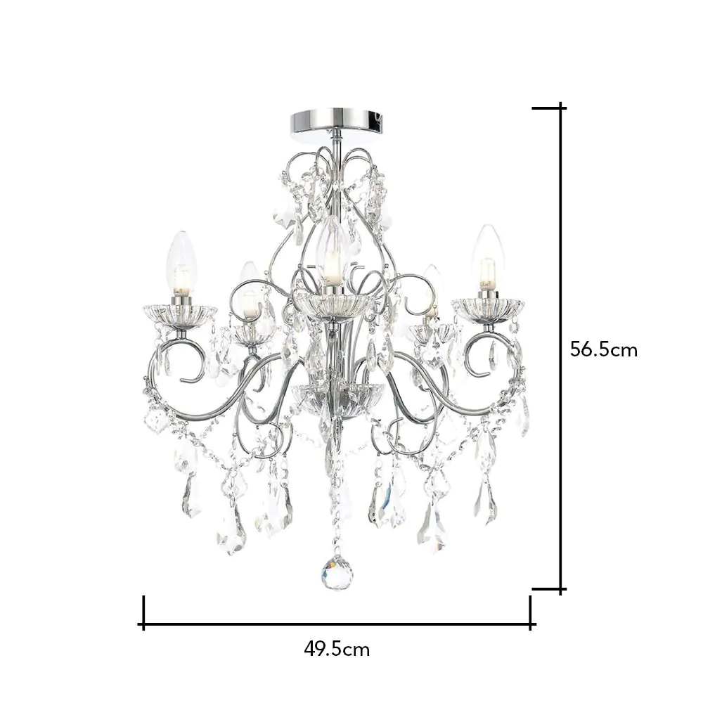 Daphne 5 Light Bathroom Chandelier, Chrome