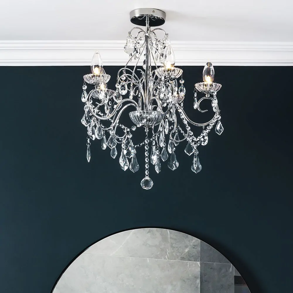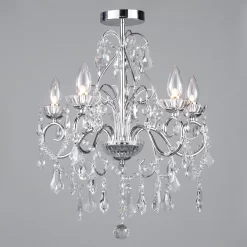 One of the most elegant fittings in our repertoire, Daphne 5 light is a stunning chandelier that is a perfect fit in absolutely any décor – even the bathroom! With an IP44 rating suitable for bathroom use, the piece has added protection against conditions that ensures you’re safe to use this piece in the bathroom. An elegant chrome structure curves and bends to reveal 5 lights, which sit in gorgeous sconces and are surrounded by elegant crystal for an extra twinkle and sparkle.
