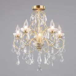Add some sparkle to your bathroom with the Daphne 5 light Bathroom Chandelier. With 5 stunning glass crystal effect decorated arms and a beautiful Satin Brass finish, our chandelier lighting brings a stylish and sopisticated touch to your interior. Including added protection from dampness due to an IP44 rating, this ceiling light is appropriate for any bathroom in bathroom zones 2, and outside zones.