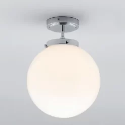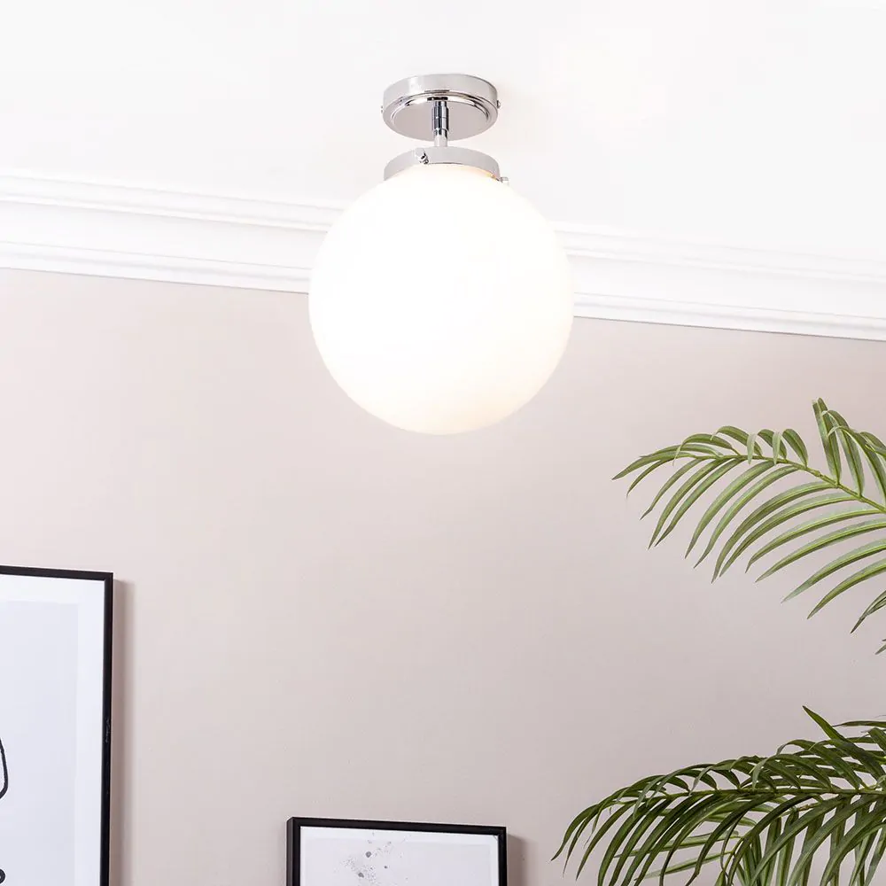 Bring a modern touch to your bathroom with the Douro Bathroom Globe Ceiling Light in chrome, with a minimal design style that complements the chrome finish and accentuates the interior styling of your bathroom with a modern touch. This ceiling light features an opal globe shade that diffuses the light within and projects a softer illumination throughout your room – helping to provide your interiors with a comfortable mood.