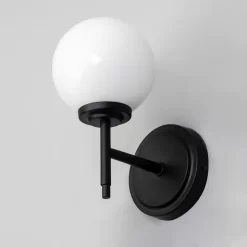 The Douro Bathroom wall Light brings a beautiful style into your home, with an IP44 rating making this a suitable fitting for use in the appropriate areas of your bathroom. The simplistic, modern matte black design provides your space with a fashionable touch, thanks to the minimal frame topped with a larger, frosted glass shade – creating a diffused, subtle glow that’s ideal for a more soothing environment.