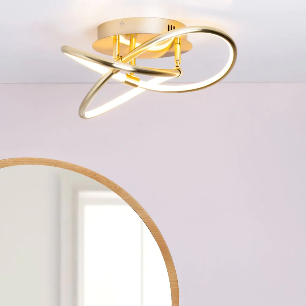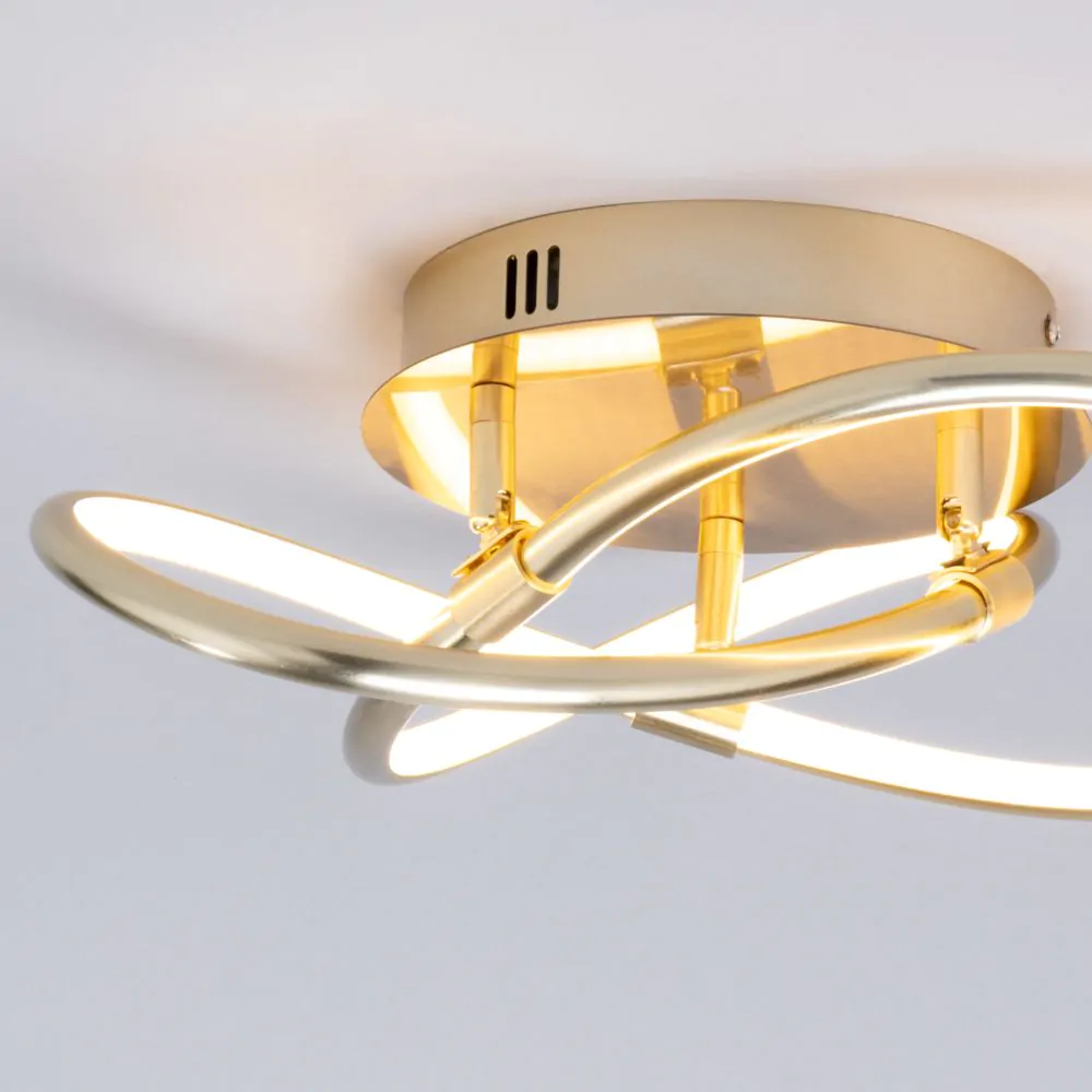 Our new Eero Knotted LED Flush Ceiling Light in satin brass is an excellent solution to getting a stunning effect in a space where pendant lighting won’t fit, providing a beautiful modern design without the massive drop. This piece features a refreshing knot design with integrated LEDs perfect for a bedroom, living room or dining room.