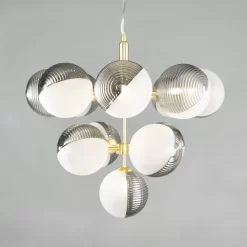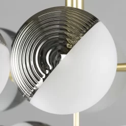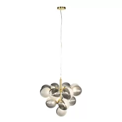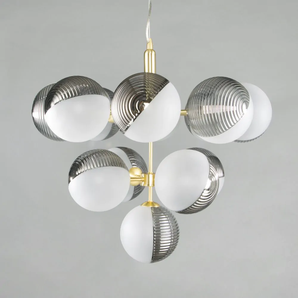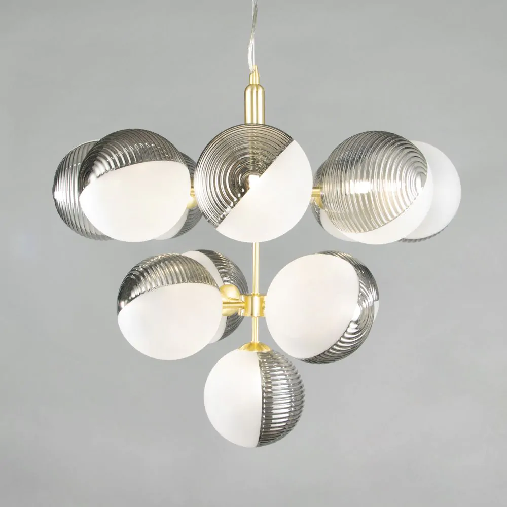 Statement interior lighting styles for your mid century style homes with the Emile Ceiling Pendant with Smoked and Opal Glass Shades. This ceiling light comes in an opulent brass finish for a warm metallic hue to your decor and features spherical half opal glass and half ribbed smoke glass shades for a warm toned light projected outwards. Style this light over any dining room table or kitchen island for the perfect statement look that is guaranteed to be the centre of attention.