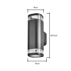 The Epin Up & Down Outdoor Wall Light adds a touch of contemporary style to your outdoor spaces. This sleek black outdoor light features a cylindrical design that casts a warm glow up and down your wall, creating a stunning lighting effect. The Epin Wall Light is IP44 rated, meaning it is resistant to dust and water splashes, making it the ideal choice for outdoor use. Whether you want to illuminate your porch, patio, or balcony, the Epin Wall Light will add that modern flair to your home.