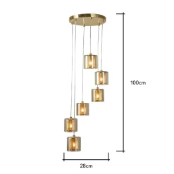 Make a statement in your interior with the Farah Mesh Cluster Pendant Light in Satin Brass and Champagne. The cascading design with mesh detailing within the glass shades adds drama and texture to your decor. The soft champagne hue casts a warm and inviting glow outwards while the satin brass finish offers an opulent look to your decor, looking ideal over any stairwell or kitchen island.