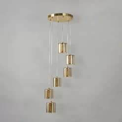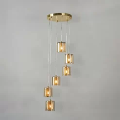 Farah Ceiling Pendant Light with Champagne Glass Shades, Satin Brass