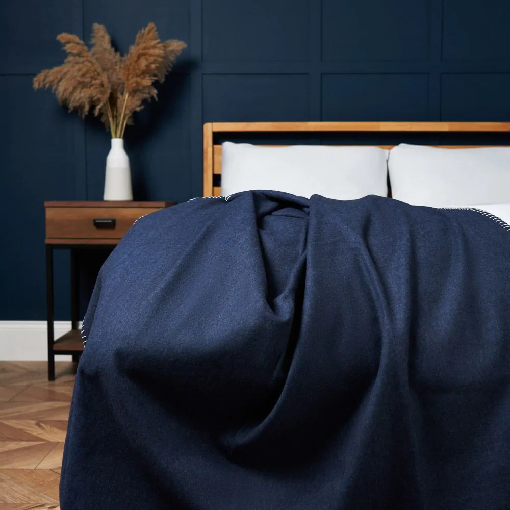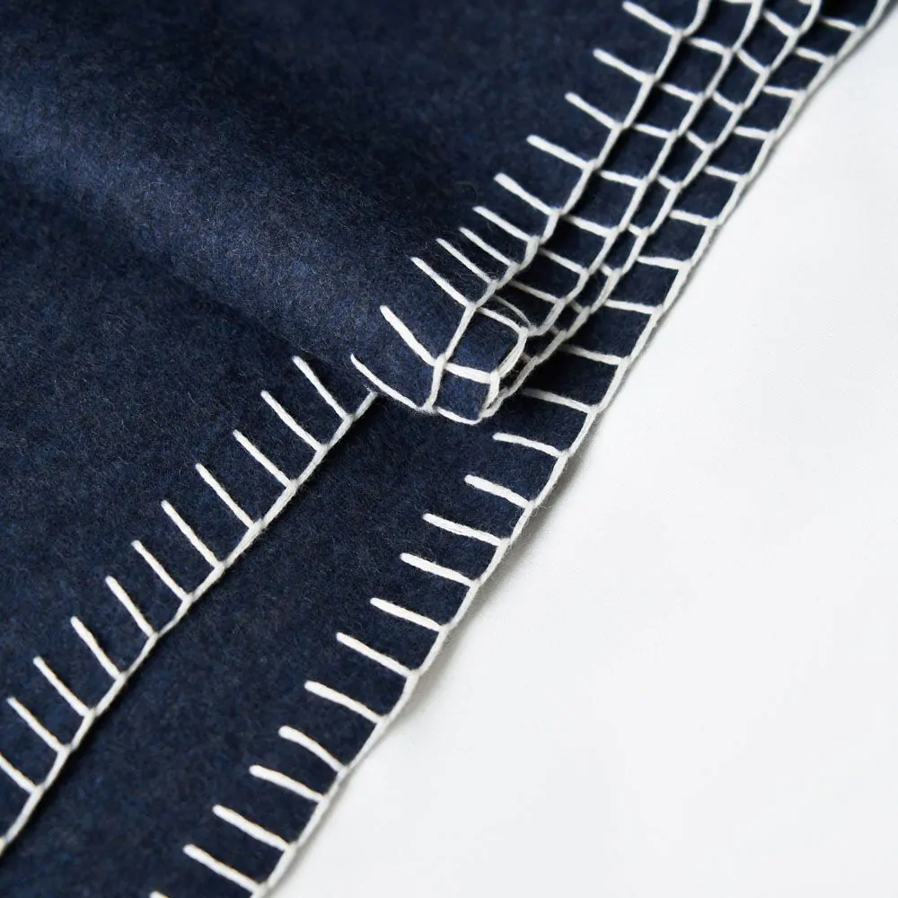 Felt Throw with Blanket Stitch Detail, RAF Blue