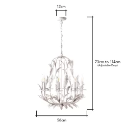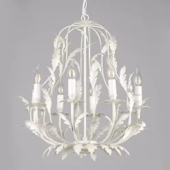 Create a traditional-style statement in your home with the Flo 8 Light Chandelier. Featuring 8 candle-style lights, this ceiling pendant provides exquisite, soft lighting whilst also creating a soothing, rustic ambience. Perfect for making a beautiful feature, this chandelier features a decorative leafy design that will add a chic flair to your décor. With a satin ivory finish, this ceiling pendant is perfect for creating contemporary style with a traditional twist.