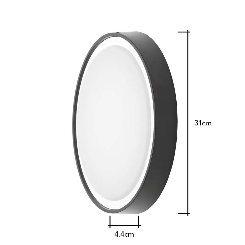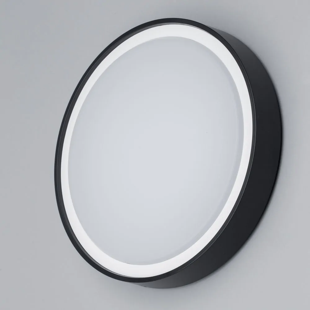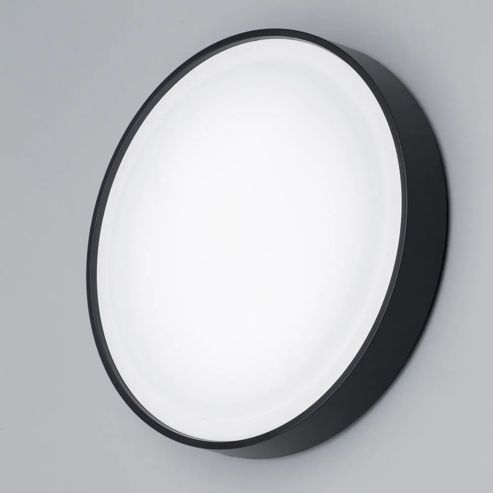 Flotta Large Outdoor LED Round Flush Wall Light, Black