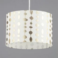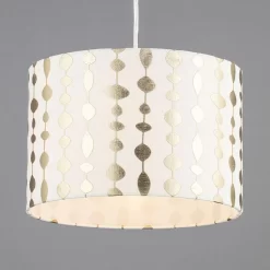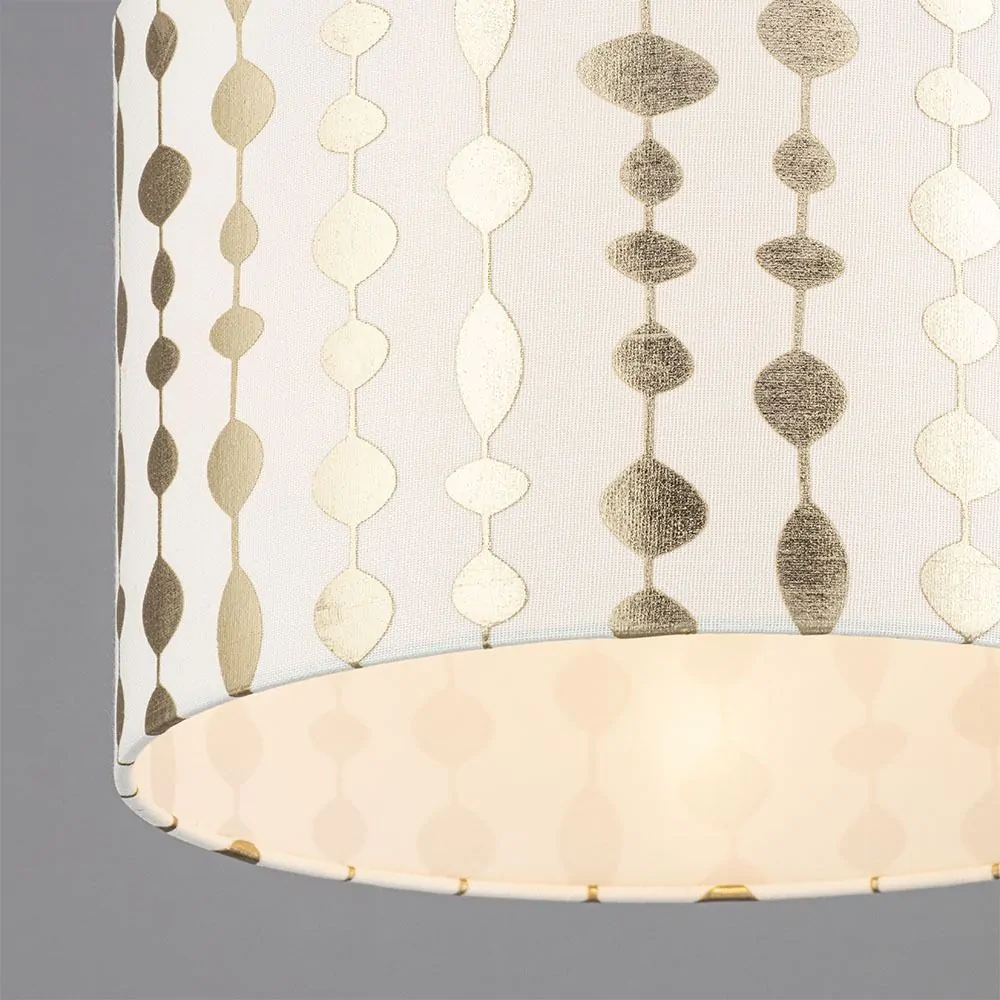 Our Foil Linen Easyfit Shade adds a beautiful, warm pop of colour to your room, with a stunning, Natural finish accented by a geometric arrangement of beautiful Gold hints, reflecting the light perfectly to create a sense of interest with your lighting. The fabric shade diffuses the warm light within into a soothing, ambient glow, emitting a softer, calming atmosphere, perfect for creating a mood in any living room or bedroom.