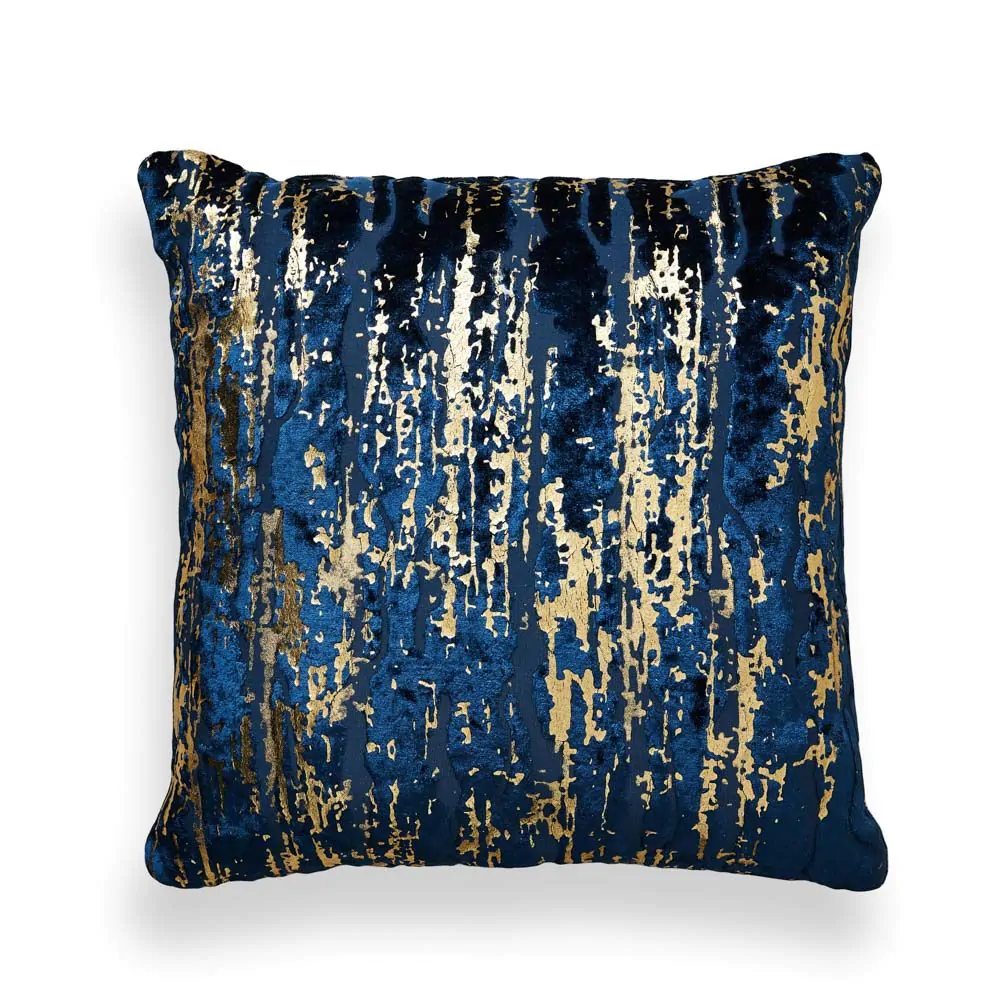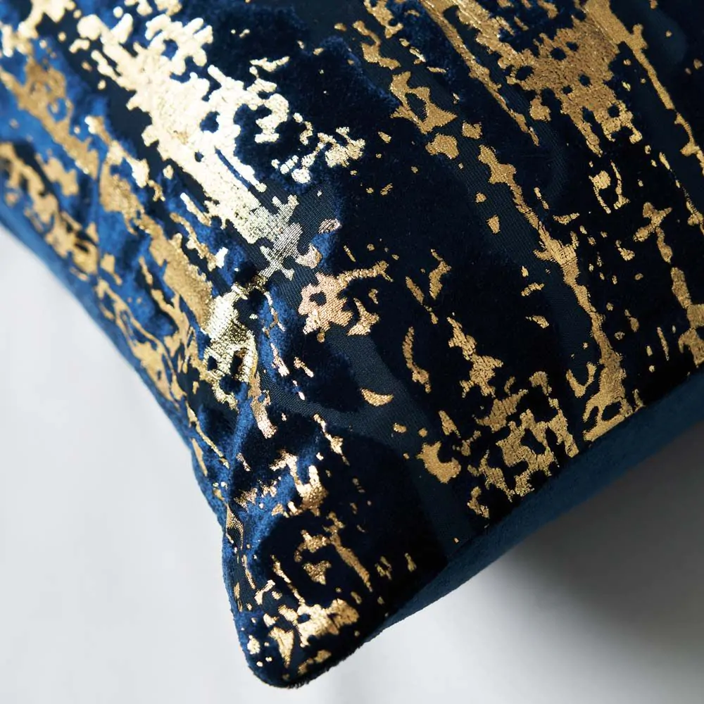 Foil Print Cushion, Navy & Gold