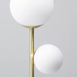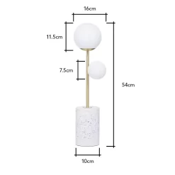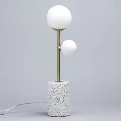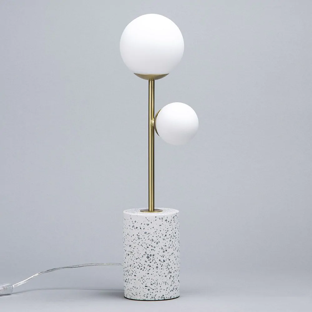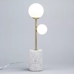 Table lamps have the ability to bring character to a room. This 2 light Forella table lamp has a quirky and unique design due to the spherical lights and the terrazzo finish cylinder base. The slim structure also has a brass finish which adds a traditional feel to the piece and contrasts its quirky nature. Perfect for a bedside table, this modern lamp adds lots of personality and flare to your bedroom.