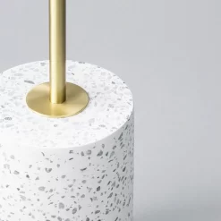 - Terrazzo and brass finishes add both a traditional and modern feel