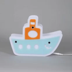 Add a fun and playful lighting element to your children’s space with the Glow Boat LED Table Lamp. The quirky styling of this boat table lamp really make it stand out in any room. The white, blue and red colours on this table lamp makes it unisex and suitable for all children, as well as adding a pop of colour into any room. The boat-designed casing surrounding the bulb allows a healthy illumination of light to shine through, giving you the perfect accent lighting element to help your little one see once darkness falls.