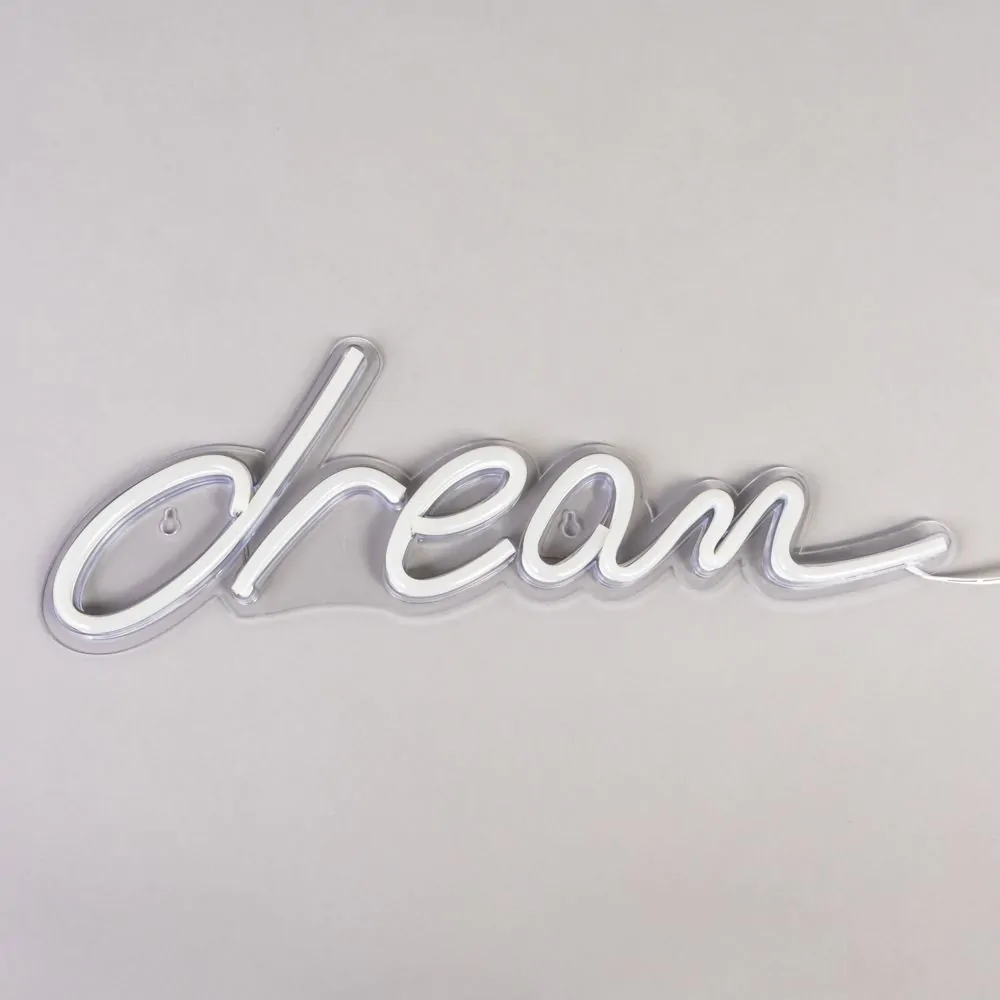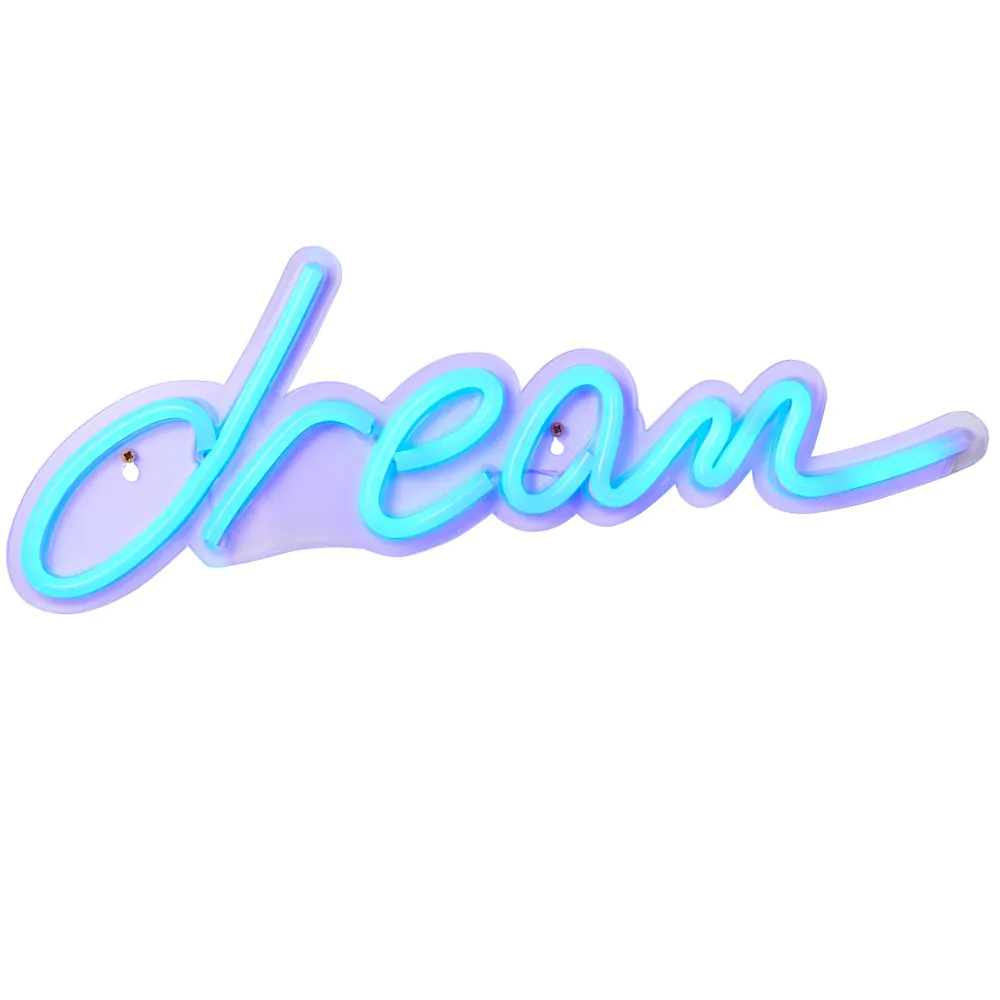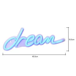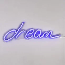 Perfect for children’s bedrooms or nurseries, the Dream Neon Wall Light looks ideal when styled above a bed. This wall light features a cursive writing design that spells out “”Dream””, glowing a fluorescent blue colour when switched on for a vibrant aesthetic. This wall light also comes with a plug adapter and a USB power cable, as well as being LED integrated, allowing for energy efficient illumination.