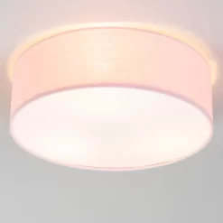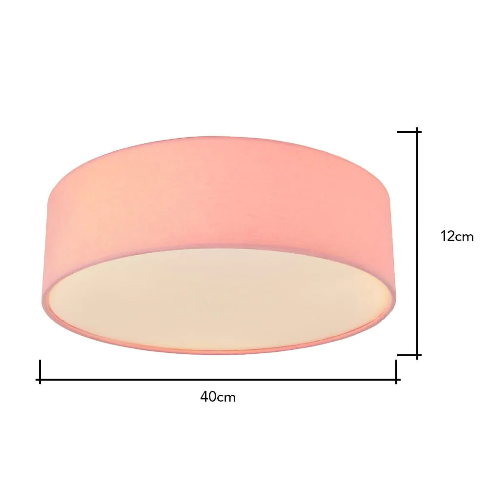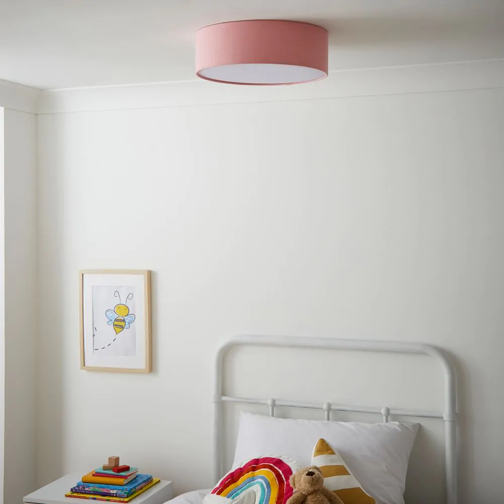 The perfect addition for rooms with low ceilings, this Pink Flush Ceiling Light is ideal for pink or lighter coloured rooms. This flush fitting features a cylindrical design and diffuses a warm toned illumination into the room. With a simplistic design, this flush light is perfect for updating older children’s bedrooms.