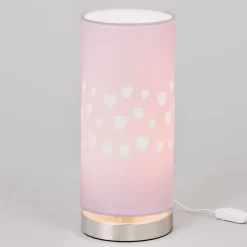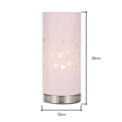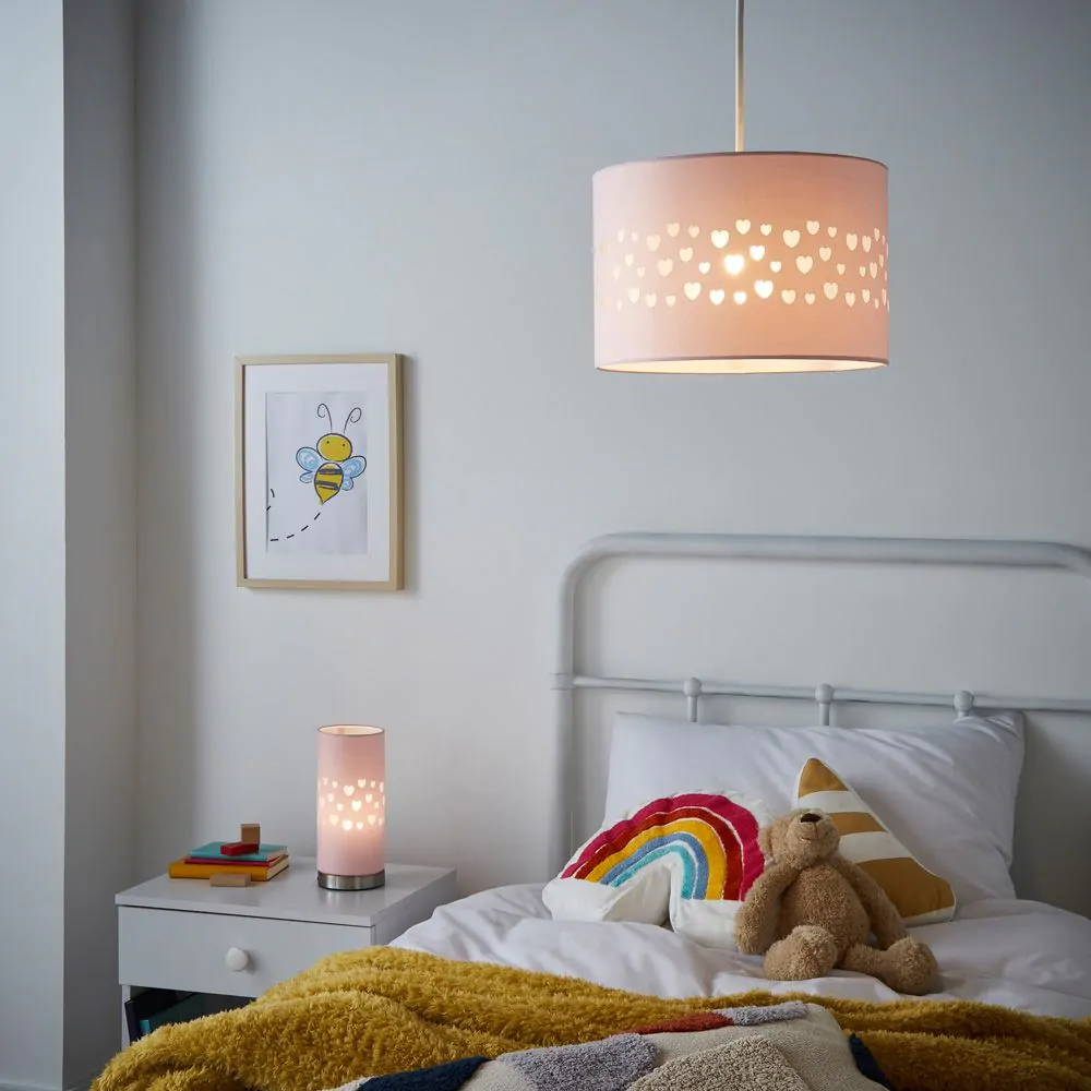 Perfect for lighter colour schemes and pink bedrooms, the Hearts Table Lamp comes in a beautiful pink finish. This lamp features a creative cut out design that projects light across the walls of your child’s bedroom in the adorable shape of hearts. Perfect for bedside table, this lamp works as the perfect night light for bed times.