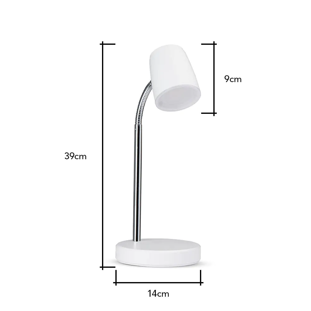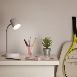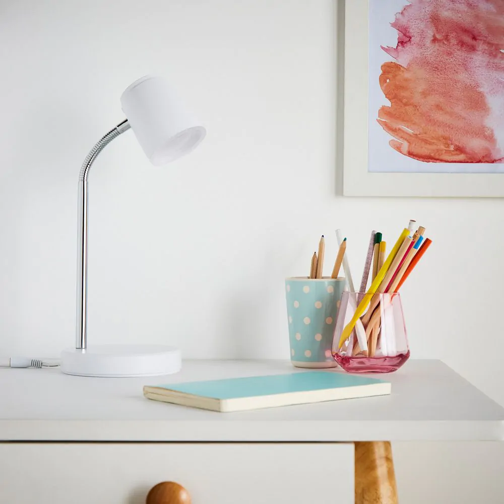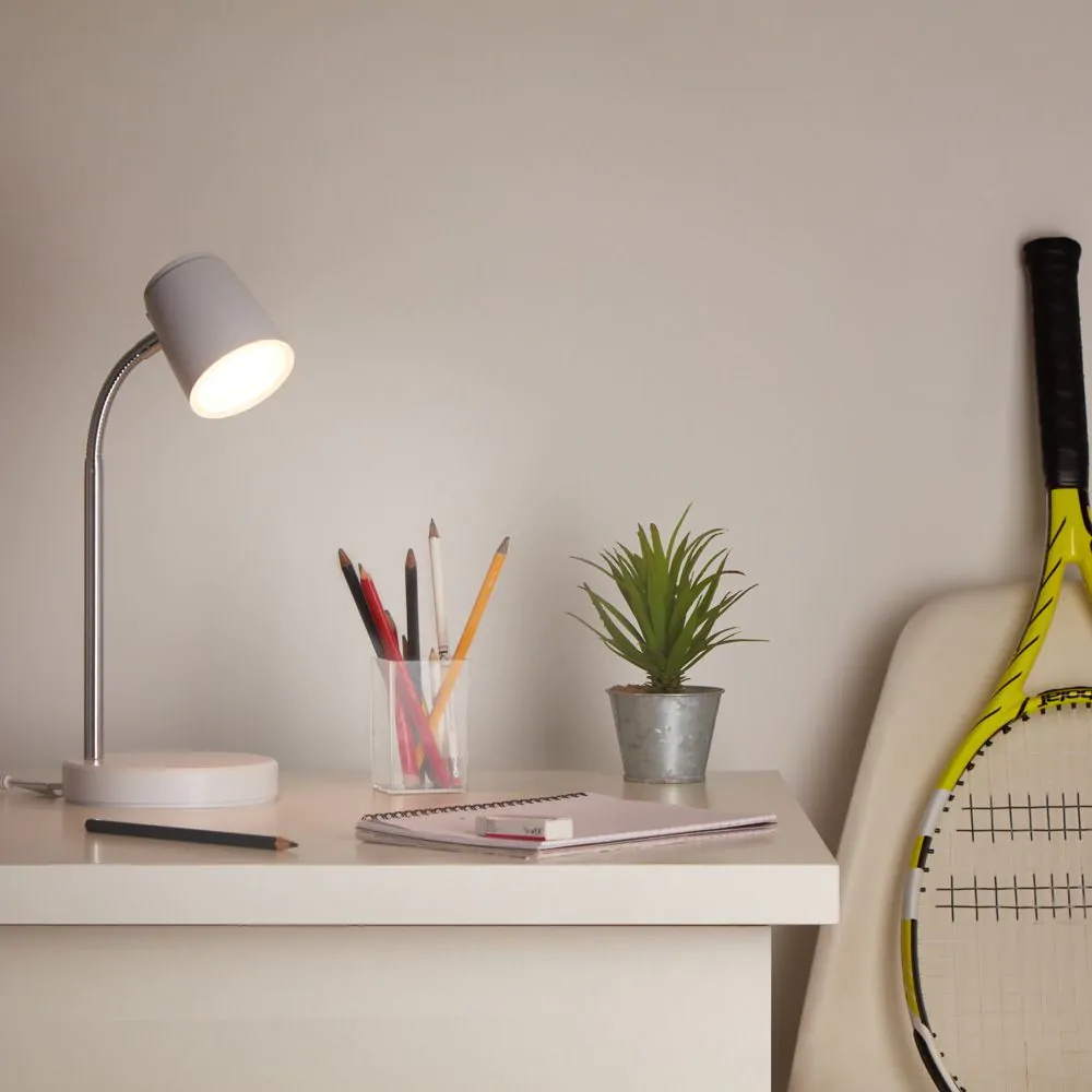 Ideal for school age children, the LED Task Lamp is perfect as a desk light. This table lamp comes in a white finish that fits with any style of room and all colour schemes. It also features an adjustable head which can be positioned to direct light at any homework or other school projects.