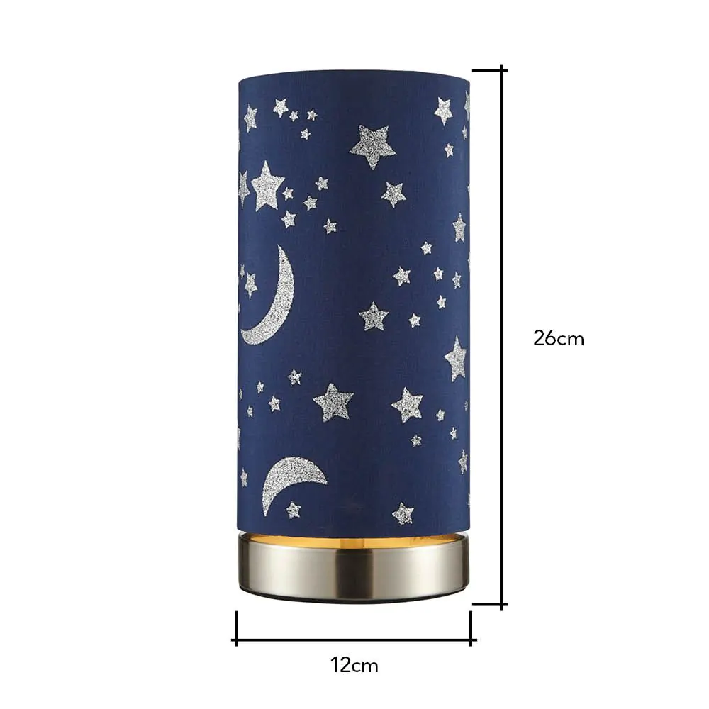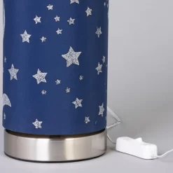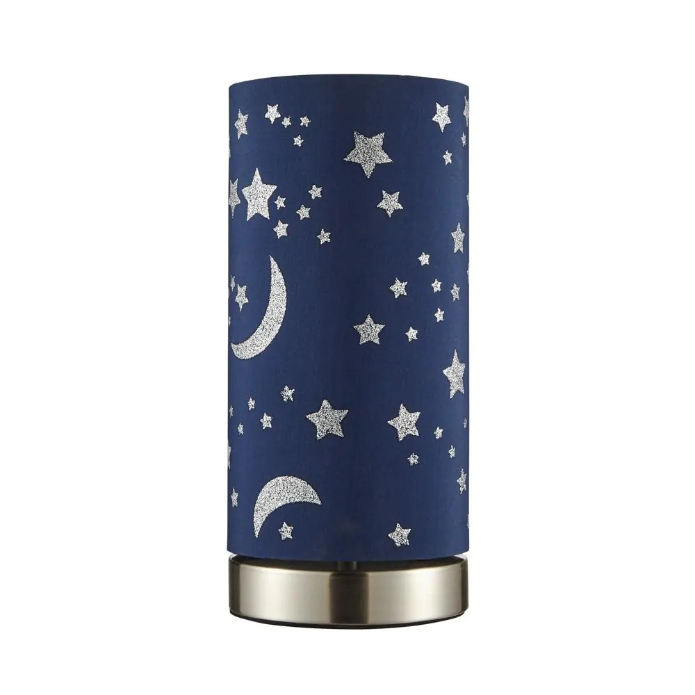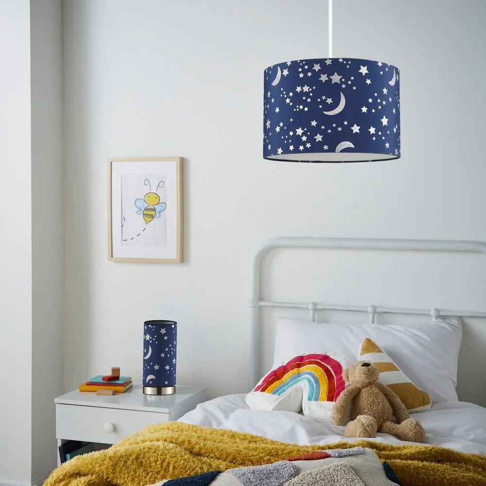 Give your child’s bedroom a look that is out of this world with this Moon and Stars Table Light. This children’s lamp features a navy shade with moon and stars print. It also creates a soft glow as the light shines outwards, making the ideal bedside table lamp and creating a calming environment.