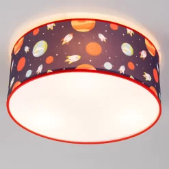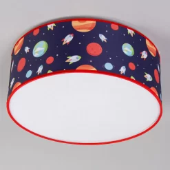 Add a space theme to your child’s bedroom or play room with the Outer space Flush Light. This flush light comes in a navy finish with gorgeous multicoloured rockets and planets printed on it. Ideal for low ceilings, this flush fitting has a fabric shade that is easy to clean and diffuses a warm glow into the room.