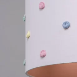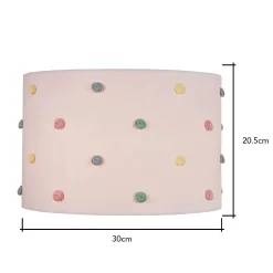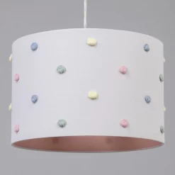 Bring a simple but adorable look your children’s bedroom or playroom with the Pom Pom Light Shade. This light shade comes in white with a pink lining and is decorated in multi-coloured pastel pompoms. Easy fit shades are ideal for quickly updating any room as they simply screw onto any pre-existing light fitting.
