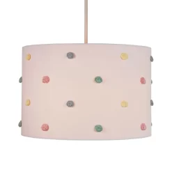 Bring a simple but adorable look your children’s bedroom or playroom with the Pom Pom Light Shade. This light shade comes in white with a pink lining and is decorated in multi-coloured pastel pompoms. Easy fit shades are ideal for quickly updating any room as they simply screw onto any pre-existing light fitting.