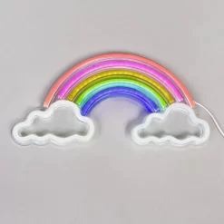 Colourful lighting for children’s bedrooms, the Rainbow and Cloud Neon Wall Light is guaranteed to bring a fun look to any home. This wall light features a multi-coloured rainbow design with clouds, providing a vibrant fluorescent aesthetic. This wall light is the ideal night light and is LED integrated, providing an energy efficient illumination.