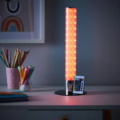 The Glow Shimmer Colour Changing LED Cylinder Table Lamp in Chrome is sure to add a sparkle to any room. The cylinder is filled with glitter that shines through once the lamp is illuminated. Featuring integrated LED bulbs, there is no need to mess around trying to change or fit a bulb, while giving you energy-efficient lighting. While the colour-changing element allows you to customise the lighting to suit your mood, all from the handy remote control that comes with it.