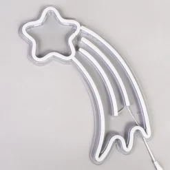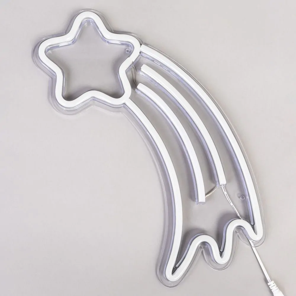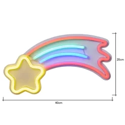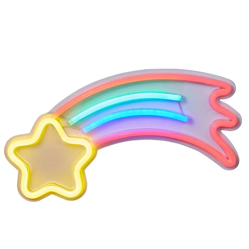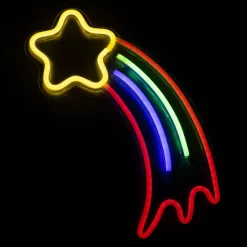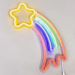 Vibrant and colourful lighting styles, the Shooting Star Neon Wall Light is perfect for children’s bedrooms. This wall light features a fluorescent design with a star that glows yellow with a multi-coloured trail for a fun and eye catching appearance. It is also USB powered and LED integrated, allowing for energy efficient illumination.