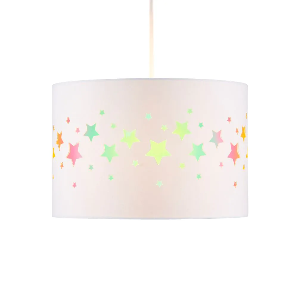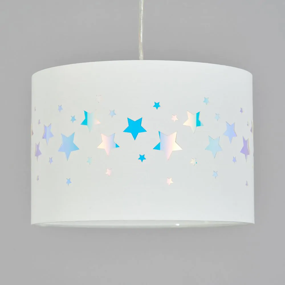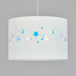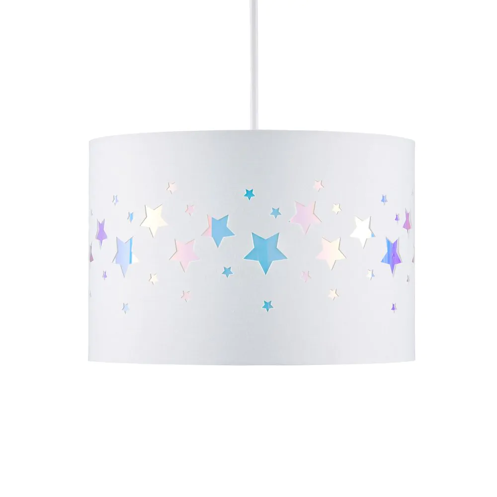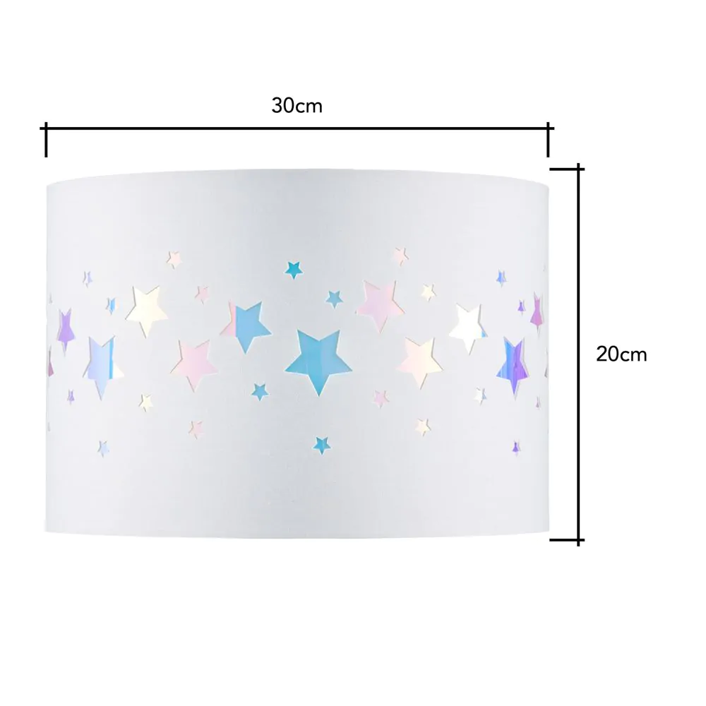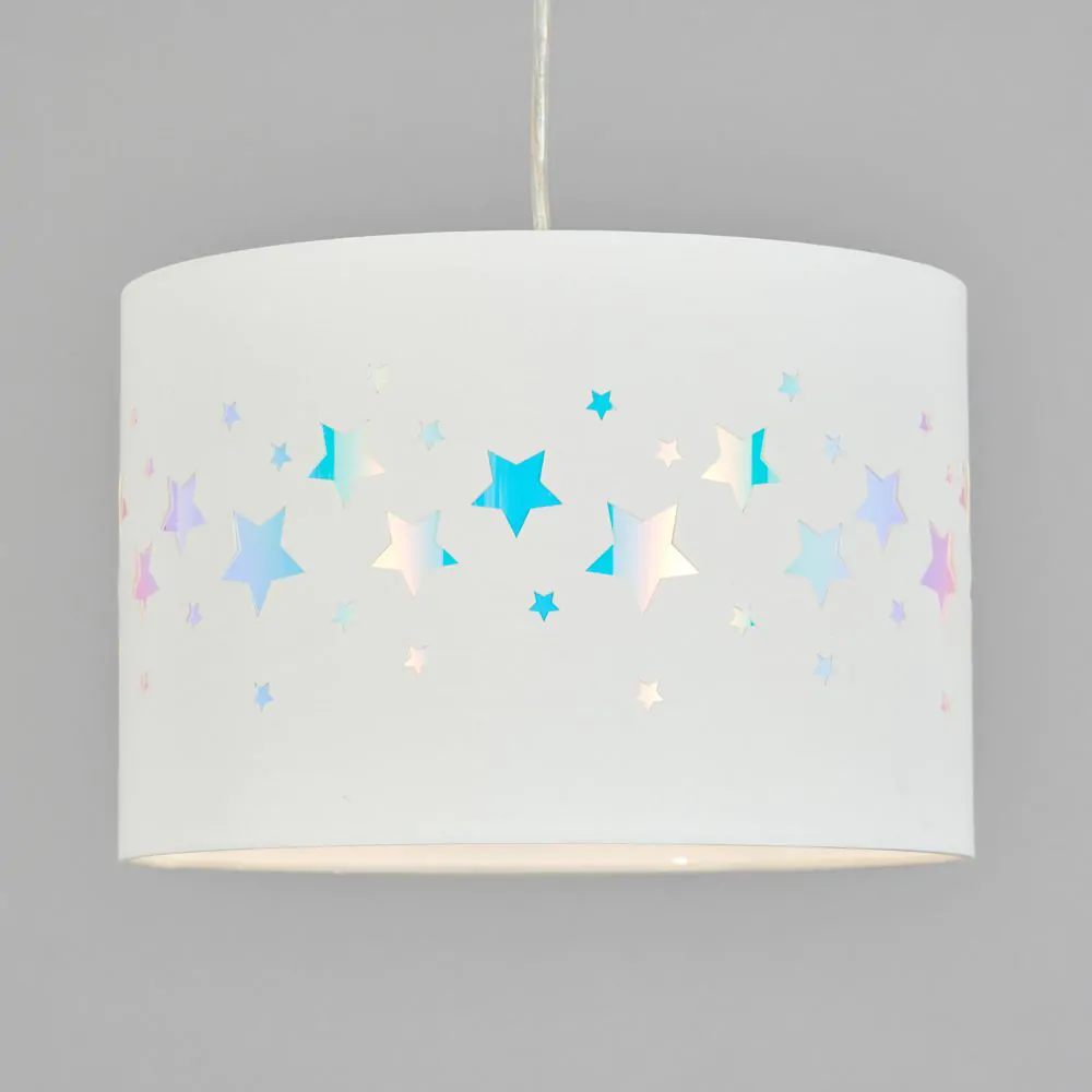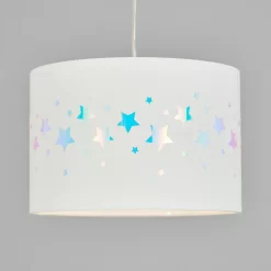Our Glow Stars Iridescent Easy Fit Shade is a stunning addition to elevate both your lighting and decor. This unique shade features a captivating iridescent finish, creating a mesmerising play of colours and adding a touch of magic to any room. The easy-fit design allows for hassle-free installation, effortlessly transforming your existing ceiling pendant into a focal point of elegance. This Easy fit shade is the perfect solution for children’s bedrooms, allowing you to easily change the lighting as they grow while sparking their imagination whilst they are young.