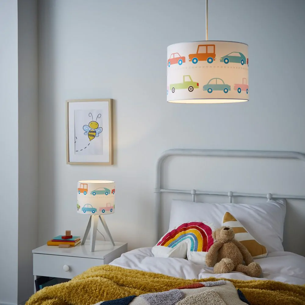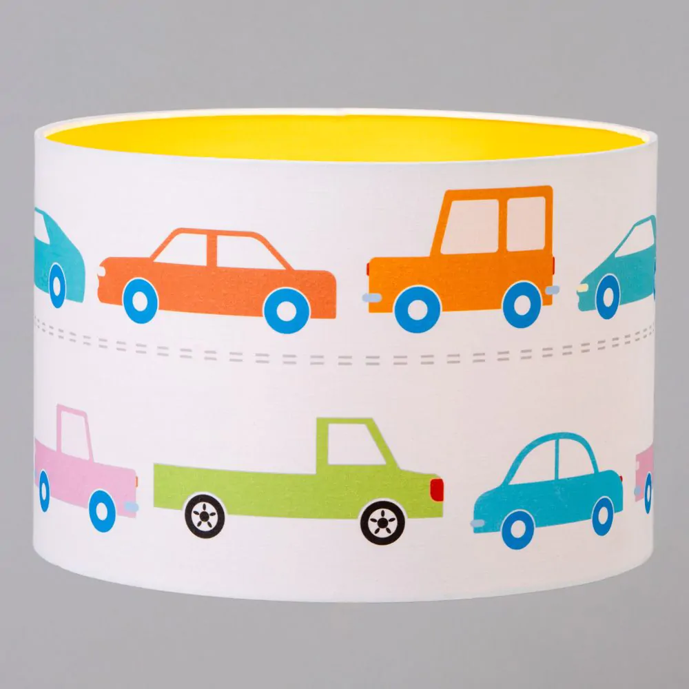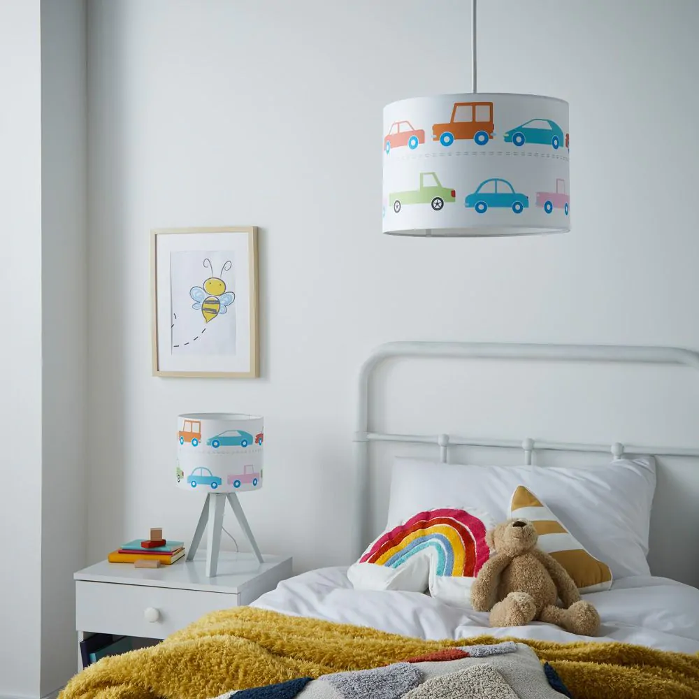 Quirky and endearing nursery lampshades for your child’s bedroom, this Cars Light Shade is the perfect décor addition. This lightshade comes in a clean and airy white finish and features with an array of multi-coloured cars and trucks. Lampshades are a great option as they diffuse a soft, warm toned illumination across the room, creating a calming atmosphere.