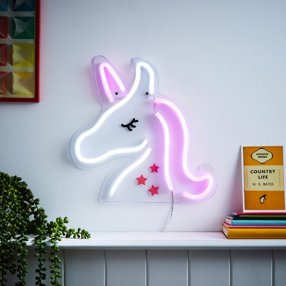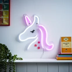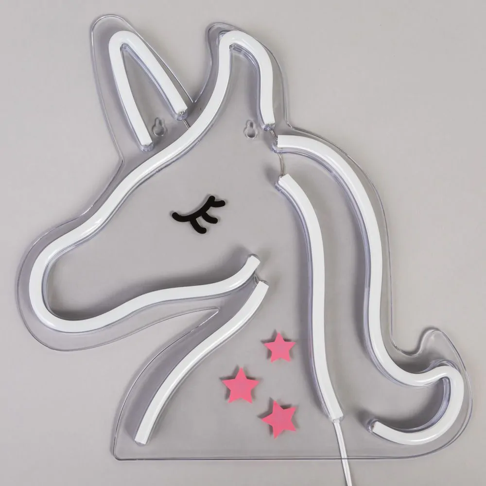Characteristic lighting styles for modern room designs, the Unicorn Neon Wall Light is perfect for gallery walls or kid’s bedrooms. This wall light comes in an adorable unicorn design that glows white and pink for a vibrant aesthetic. It is also LED integrates and comes with a plug adapter and USB power cable.