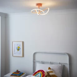Perfect for pink bedrooms and lighter colour schemes, the Whirly Ceiling Light comes in a pastel pink finish. This ceiling light features a flush design, meaning that it is ideal for low ceiling due to it’s minimal drop height. With an abstract yet simplistic look, this ceiling flush is ideal for older children’s bedrooms.