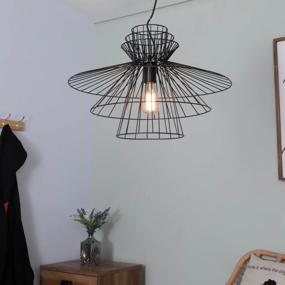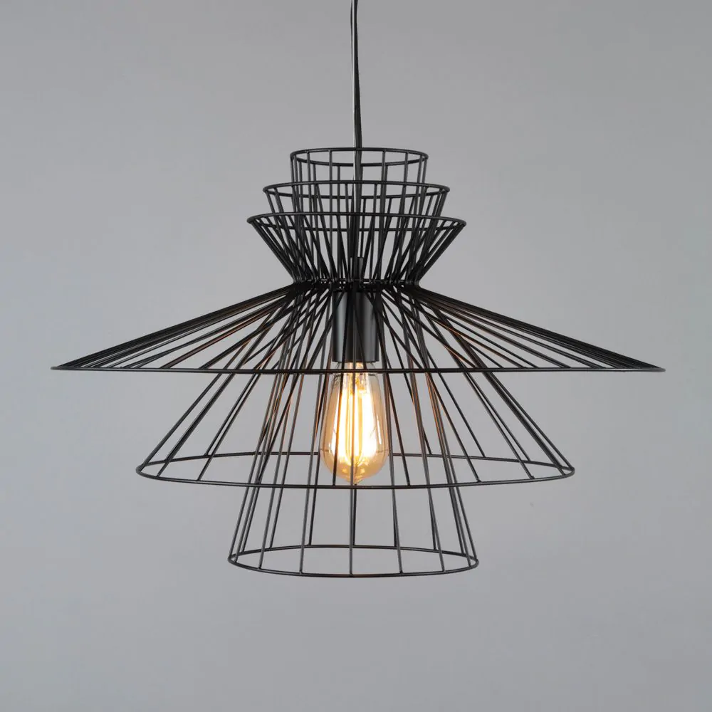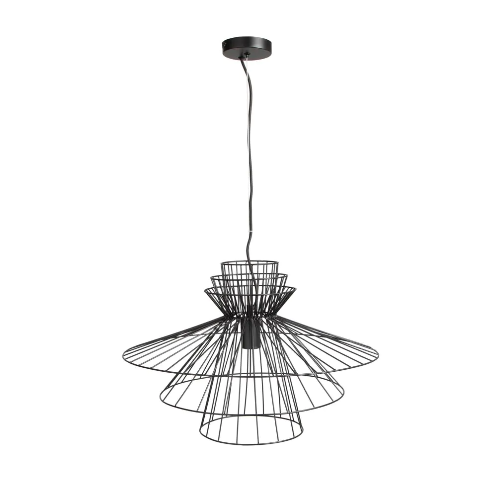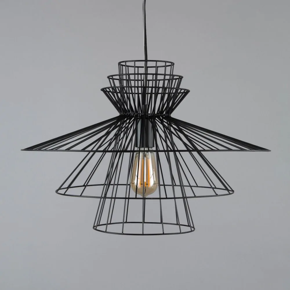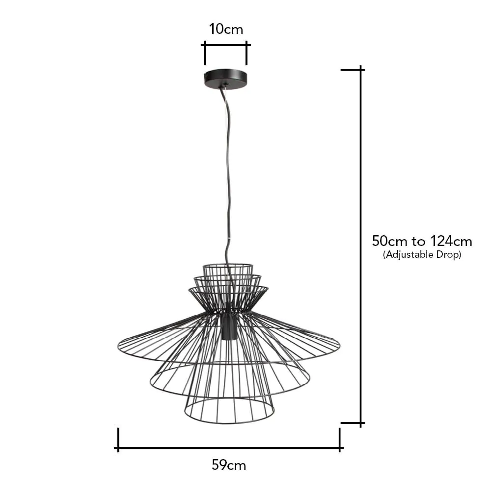 Bring Japandi chic to your home with the Grace Large Wire Frame Ceiling Pendant in Black. The black finish of this large statement ceiling light fits well with modern decor. The tiers of this large ceiling pendant light makes for the perfect centrepiece for any minimalist style.