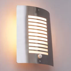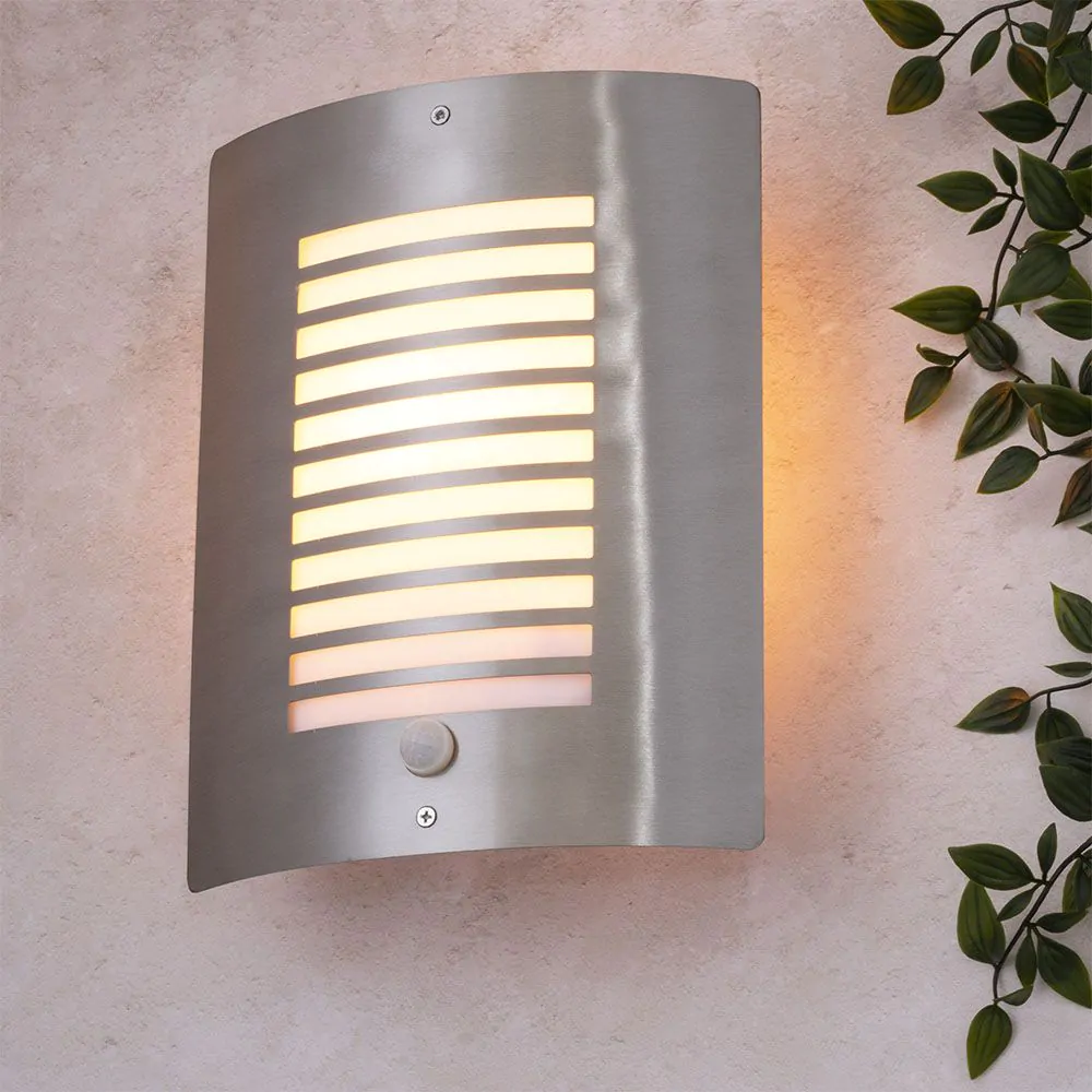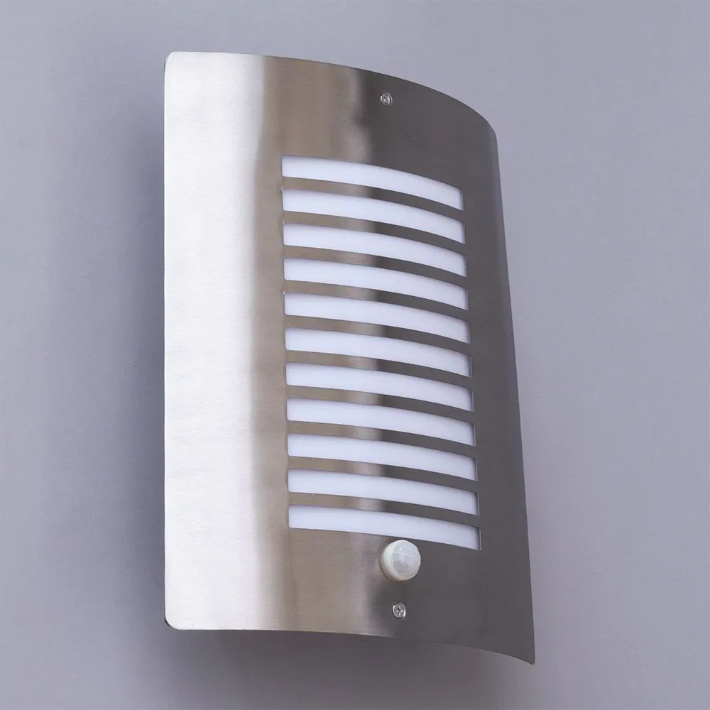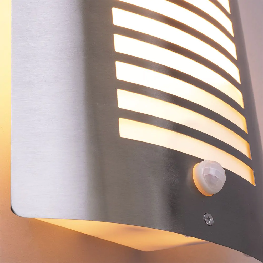 Hale Panel Slatted Wall Lantern With PIR, Stainless Steel