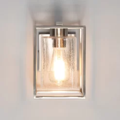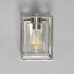 Hardy Cage Wall Light with Bubble Glass Shade, Satin Nickel