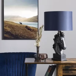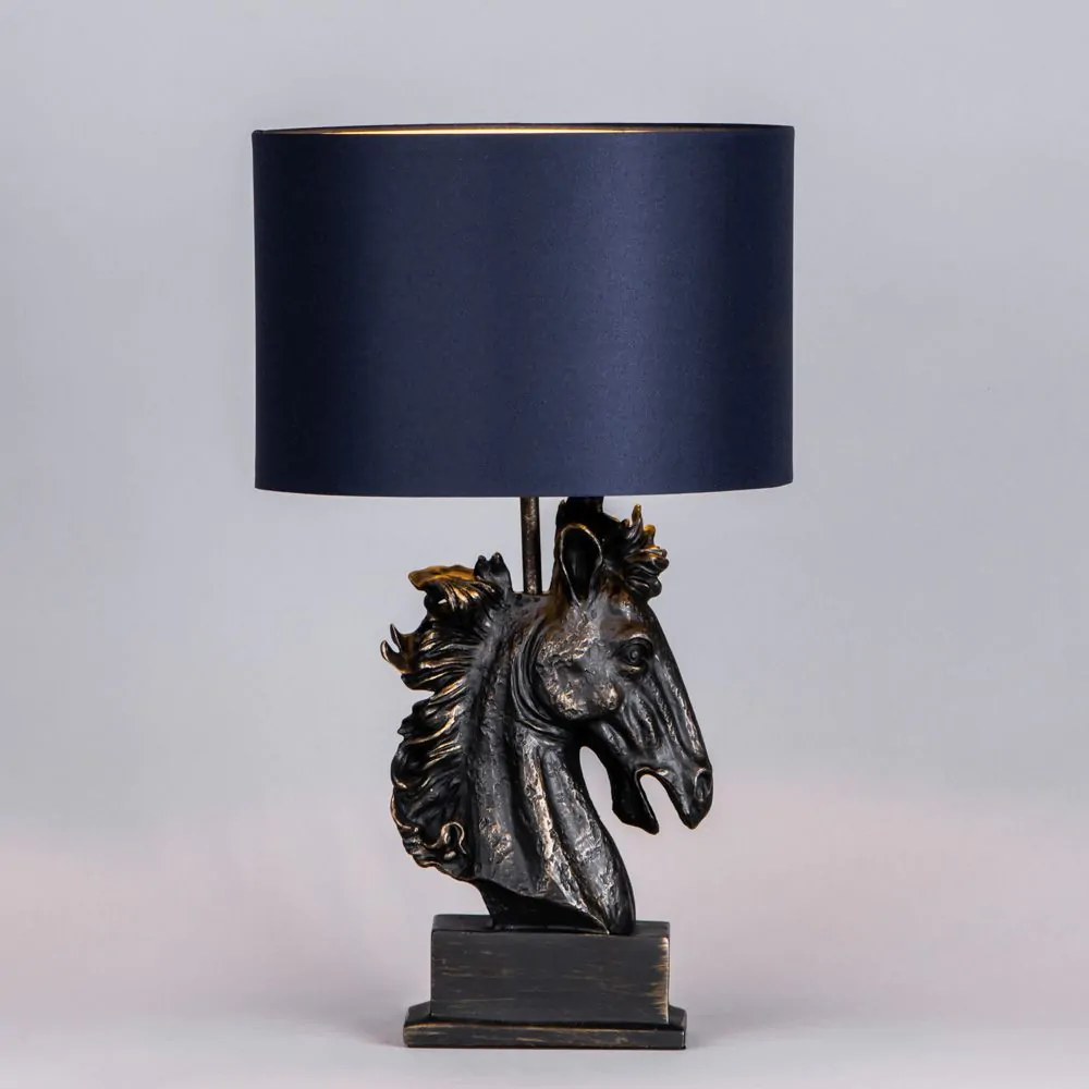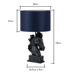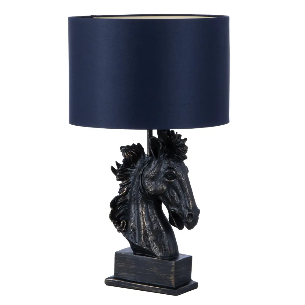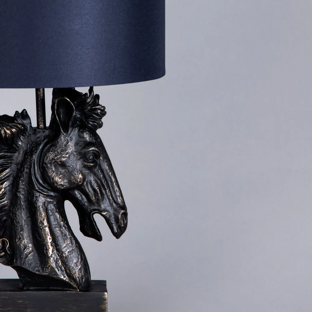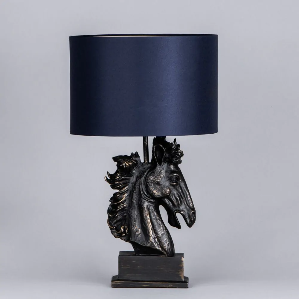 Harry Horse Table Lamp with Navy Shade, Black