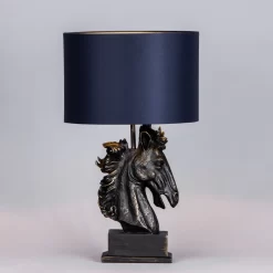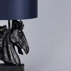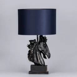 Introducing Harry Horse; a beautifully sculpted flocked horse head table lamp. Equestrian lover or not, Harry is the perfect choice for anyone who wants to add a bit of character to their home. Harry Horse’s distressed black and brass finish allows this light to fit in with a wide range of interior designs, especially monochrome schemes. The dark navy lamp shade conceals a lightbulb that emits beautiful lighting which is sure to create a warm ambience. This lamp would look magnificent in a sitting room or on a console table in your hallway.