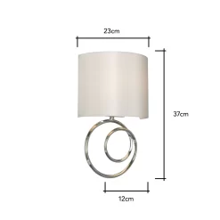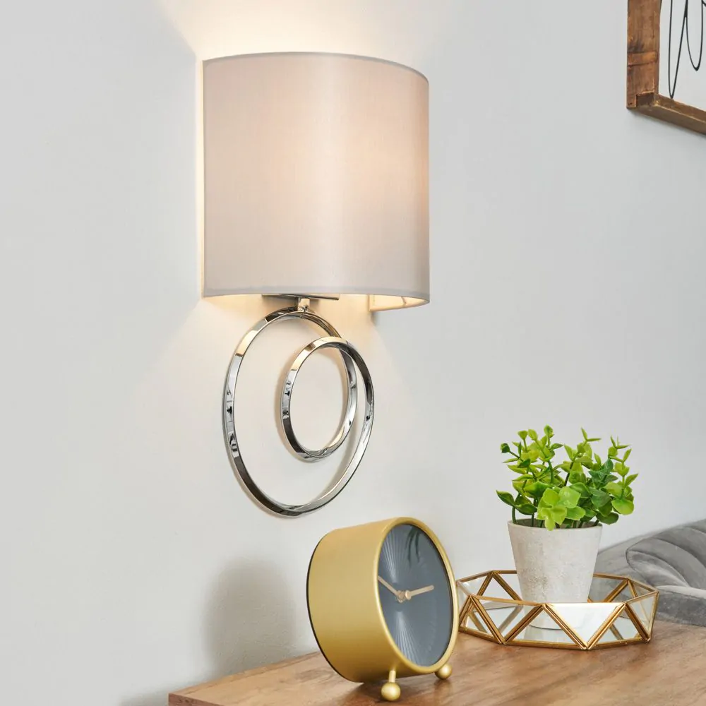 Illuminate your walls in style with the Hayley Sculpt Wall Light. Featuring a faux silk shade in satin grey, the swirling sculptural design adds an artistic flair to your decor, while the chrome finish complements modern interiors. Enjoy the soft and diffused lighting for a cosy atmosphere, looking ideal when styled in pairs on either side of a bed, mirror, or hallway.