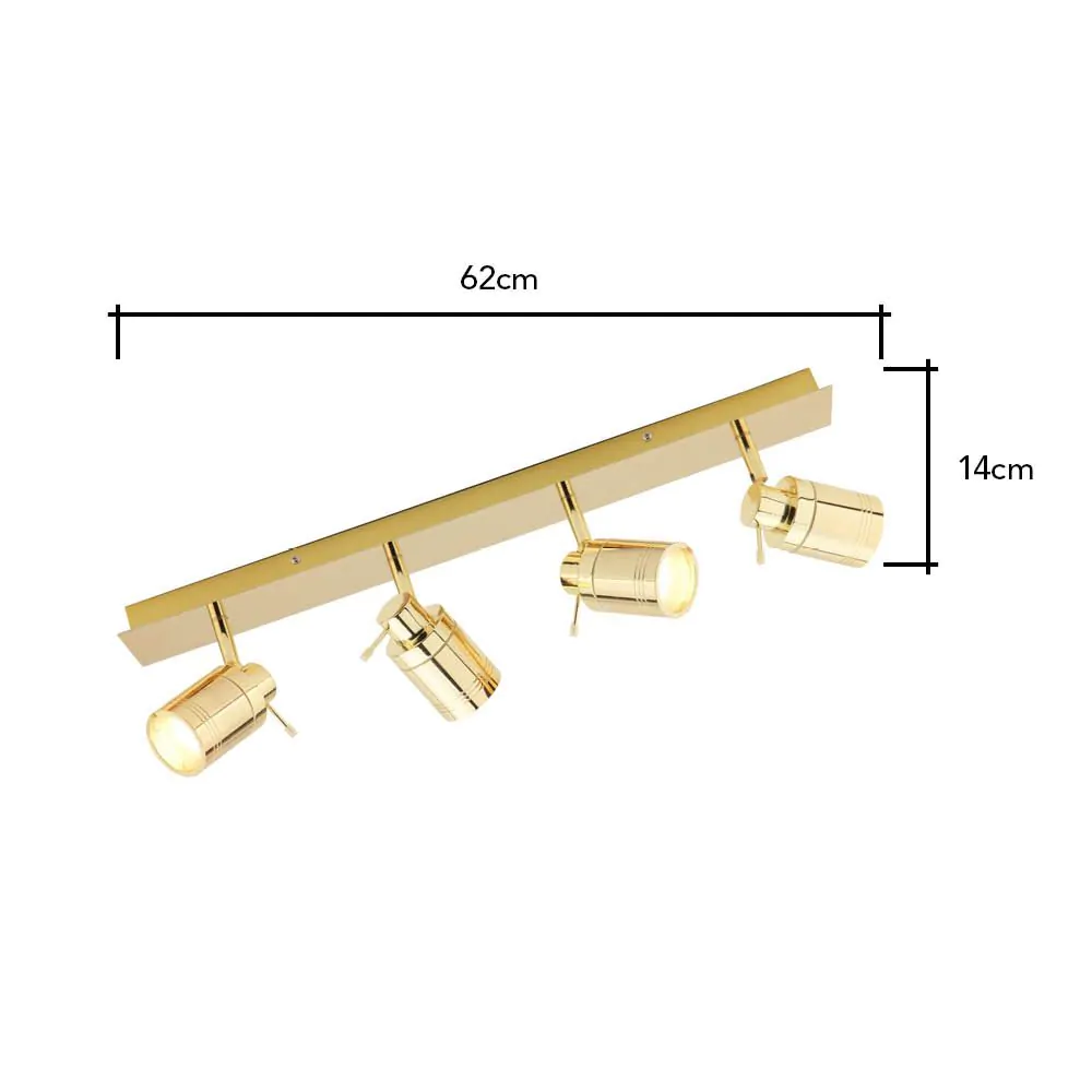 Add a retro style to your interior design with the Hector Bathroom Ceiling Spotlight Bar. This spotlight bar is finished in a sleek brass finish and is perfect for adding a vintage pop of colour to your bathroom design. It also features 4 adjustable heads for you to be able to direct wherever you need them most, making for a fantastic task lighting addition to your home.