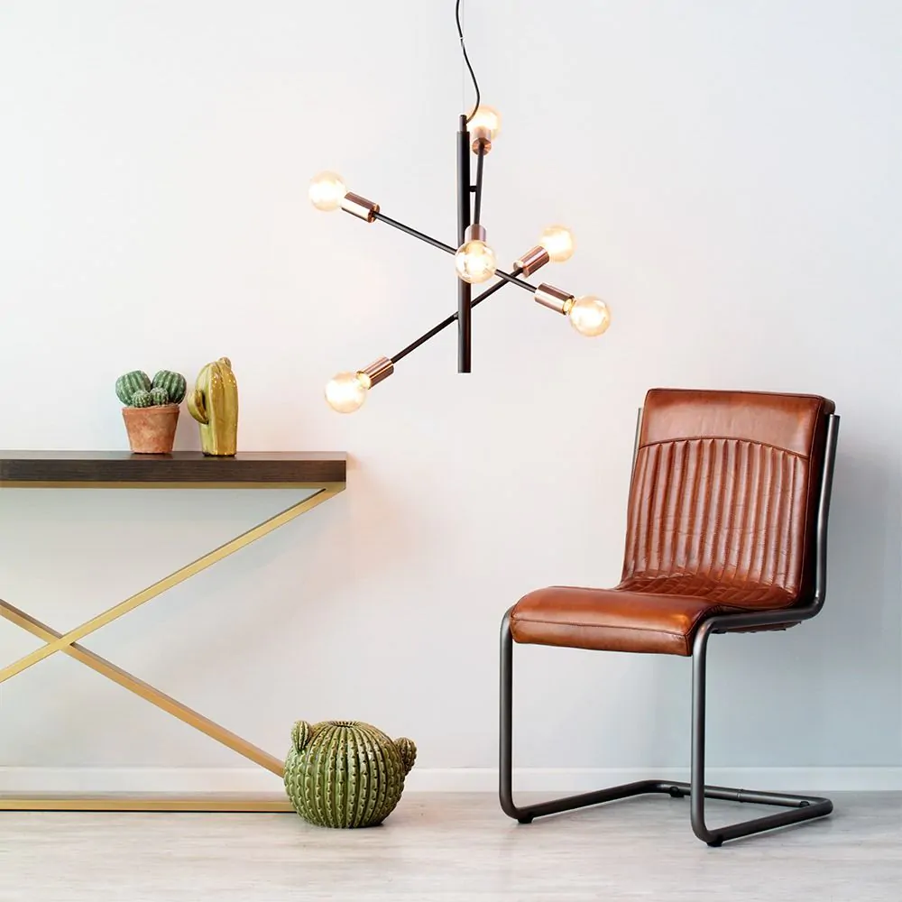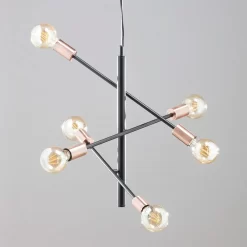 Add a stunning industrial edge to your interior décor with our Heritage Inspired Calvet Ceiling Pendant. This abstract pendant light comes in a stunning black and copper finish, offering a beautiful rustic aesthetic that is perfect above any dining room table. The ceiling light is fully height adjustable to fit low and high ceilings and looks ideal when paired with our separately sold vintage filament light bulbs.
