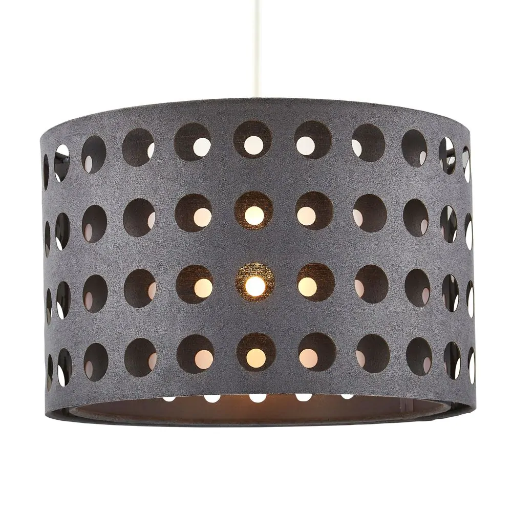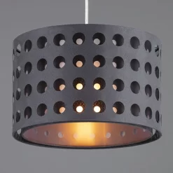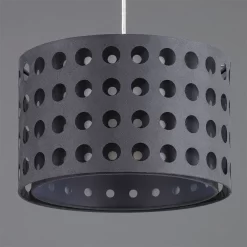 Add the contemporary look to your home’s interior lighting arrangements with our Holey Easyfit Shade in Grey. This modern addition makes for a beautifully abstract, decorative aesthetic in your rooms, featuring a minimalistic cylindrical silhouette detailed with an arrangement of artistic holes, allowing the light to escape into a glamorous illumination through your room. Able to be attached to any pre-existing fitting, the easy to fit functionality makes this a must have.
