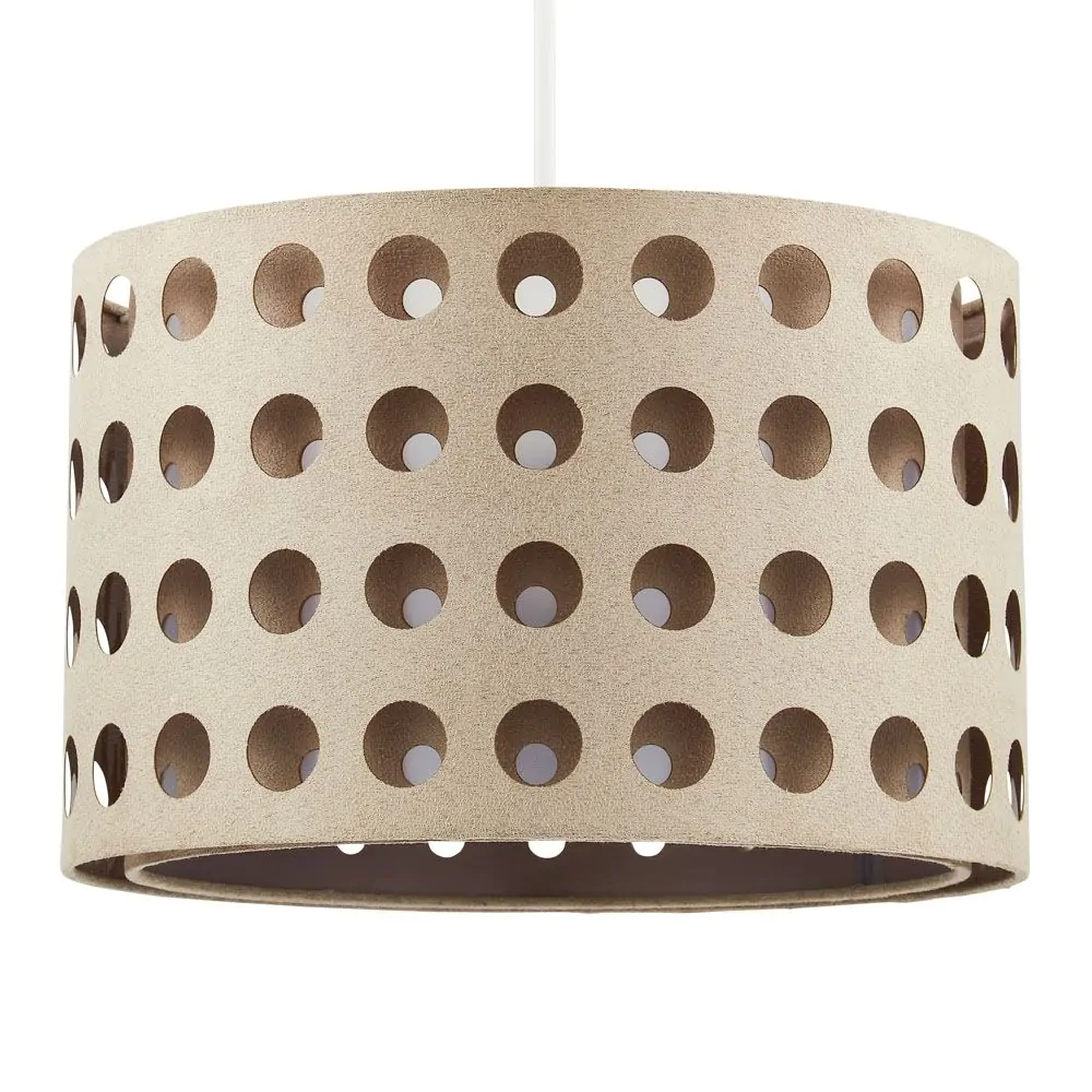 Get the contemporary style in your home with our Holey Easyfit Shade in Dark Natural, a perfect addition to your home’s interior lighting set up. With a natural hue, this modern piece has a boho twist, featuring an arrangement of stylish holes, allowing for the light within to escape into an abstract display throughout your room. Able to be attached to any pre-existing fitting, the easy to fit functionality makes this piece a must have.