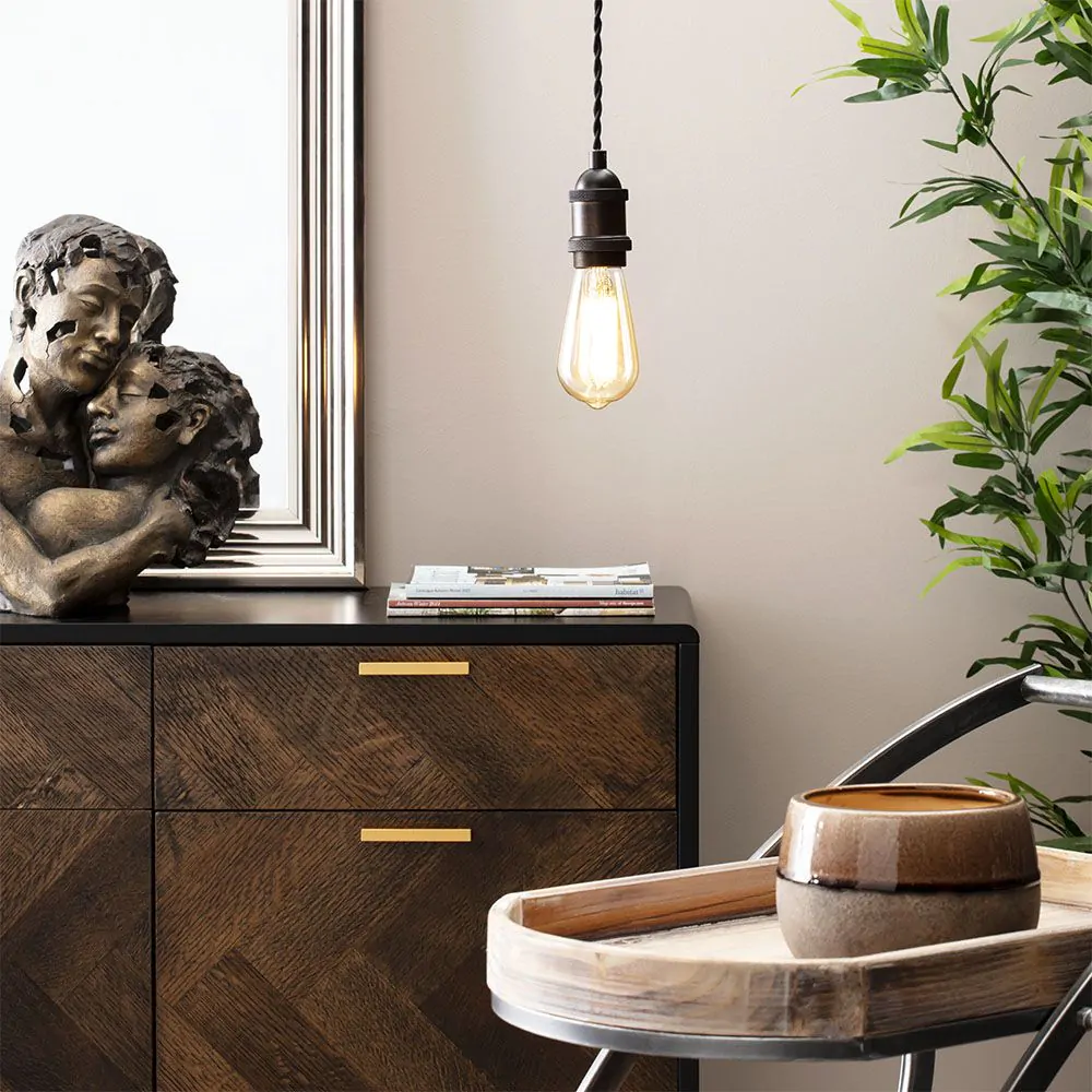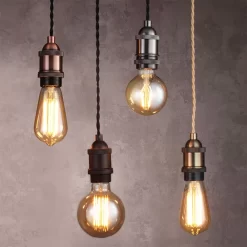 Industrial style pendant lights bring a simplistic yet immensely stylish feature into your lighting setup. A mechanical style bulb holder hangs from a black braided cable, with a bronze finish adding a retro twist to the design. For a raw, robust look, try using a vintage style bulb in this fitting – this’ll give a bolder and more eye-catching look to the pendant!