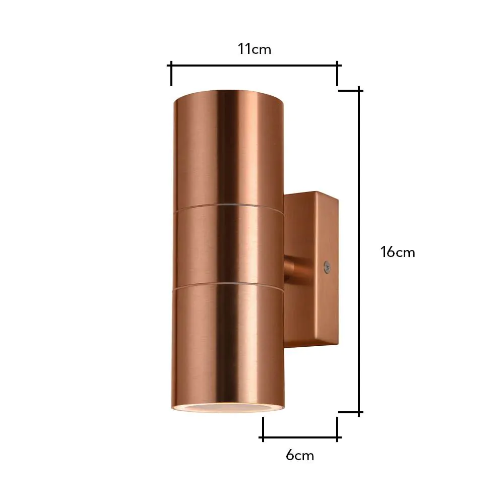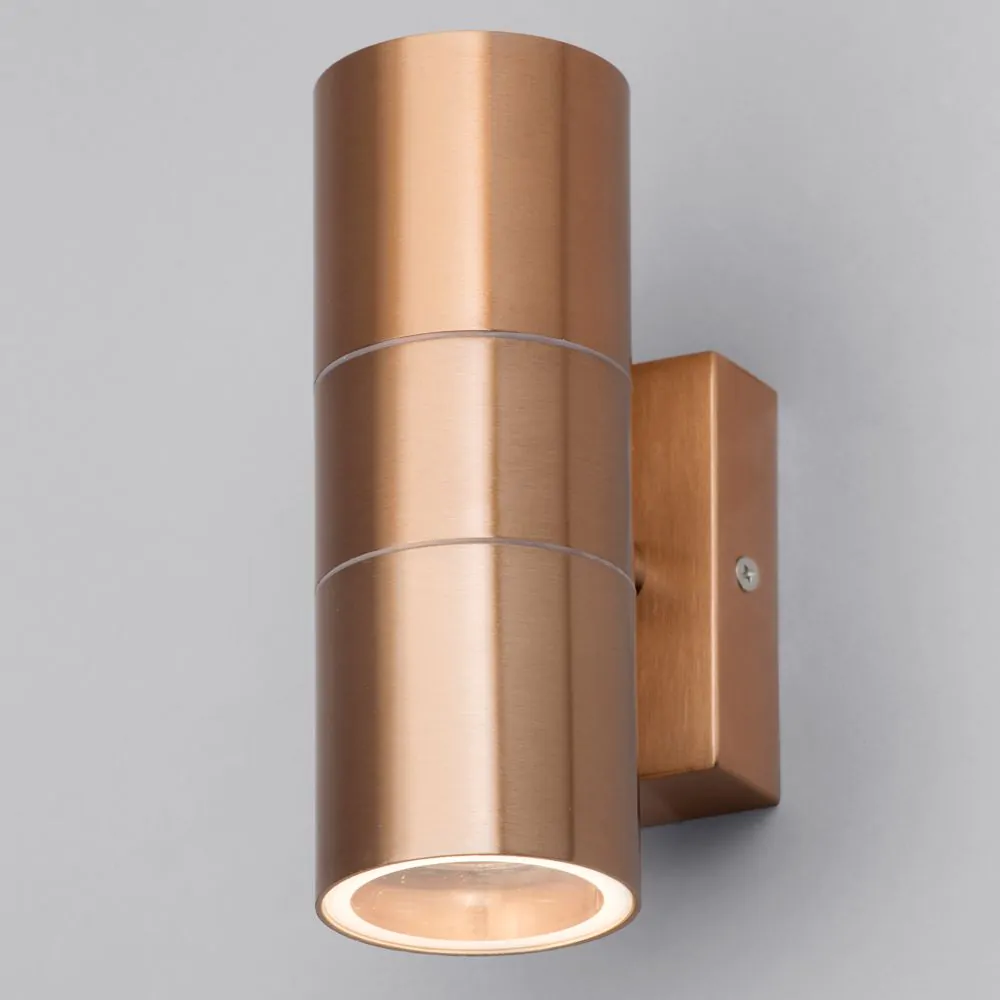This Jared copper finish light is the perfect piece to add a modern touch to the outside of your home. The copper finish looks expensive and sleek, while the cylinder design is basic yet quirky. The piece holds two lights, meaning lots of light is expressed through the Up/Down structure. This IP44-rated product is perfect for outdoors, as it looks quaint and is practical.