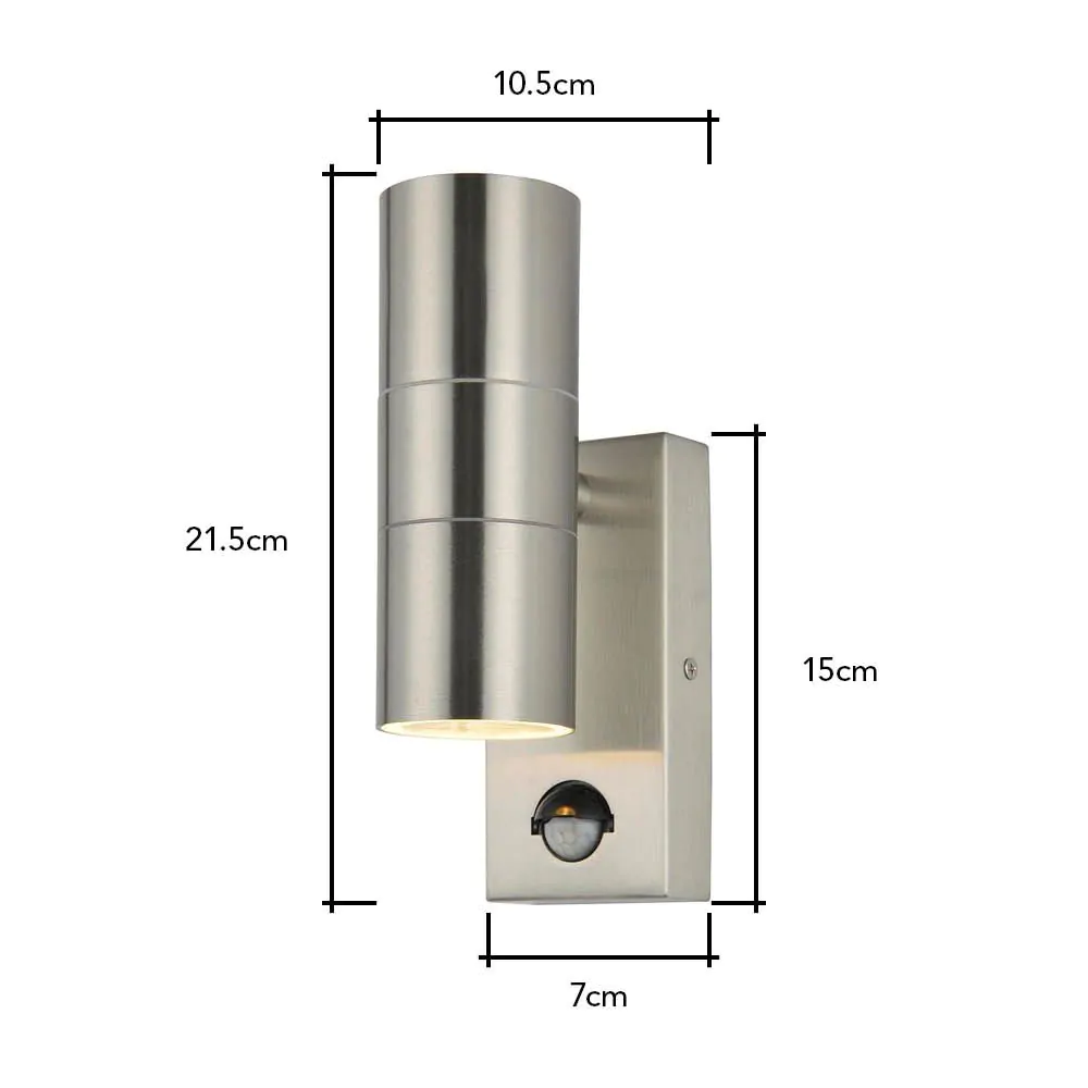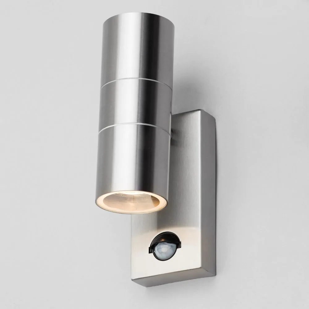 Jared Outdoor 2 Light Wall Light with PIR Sensor, Stainless Steel