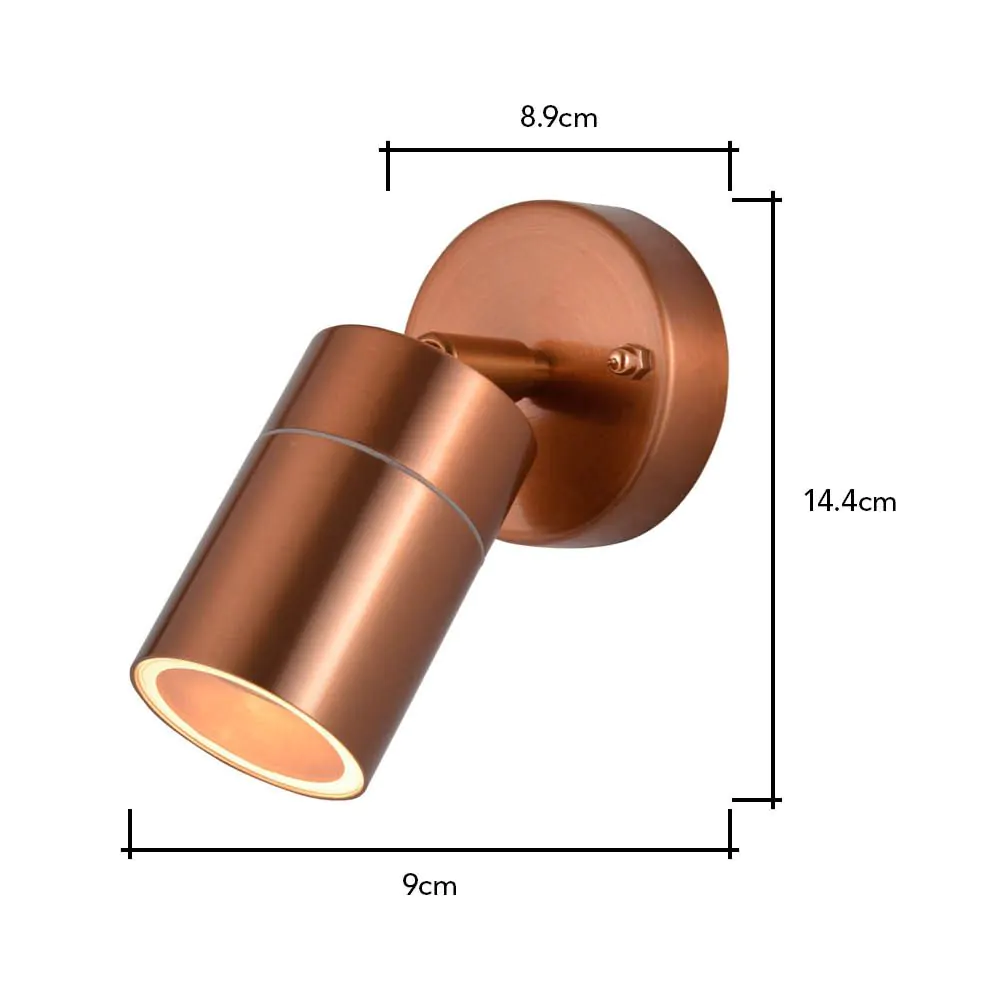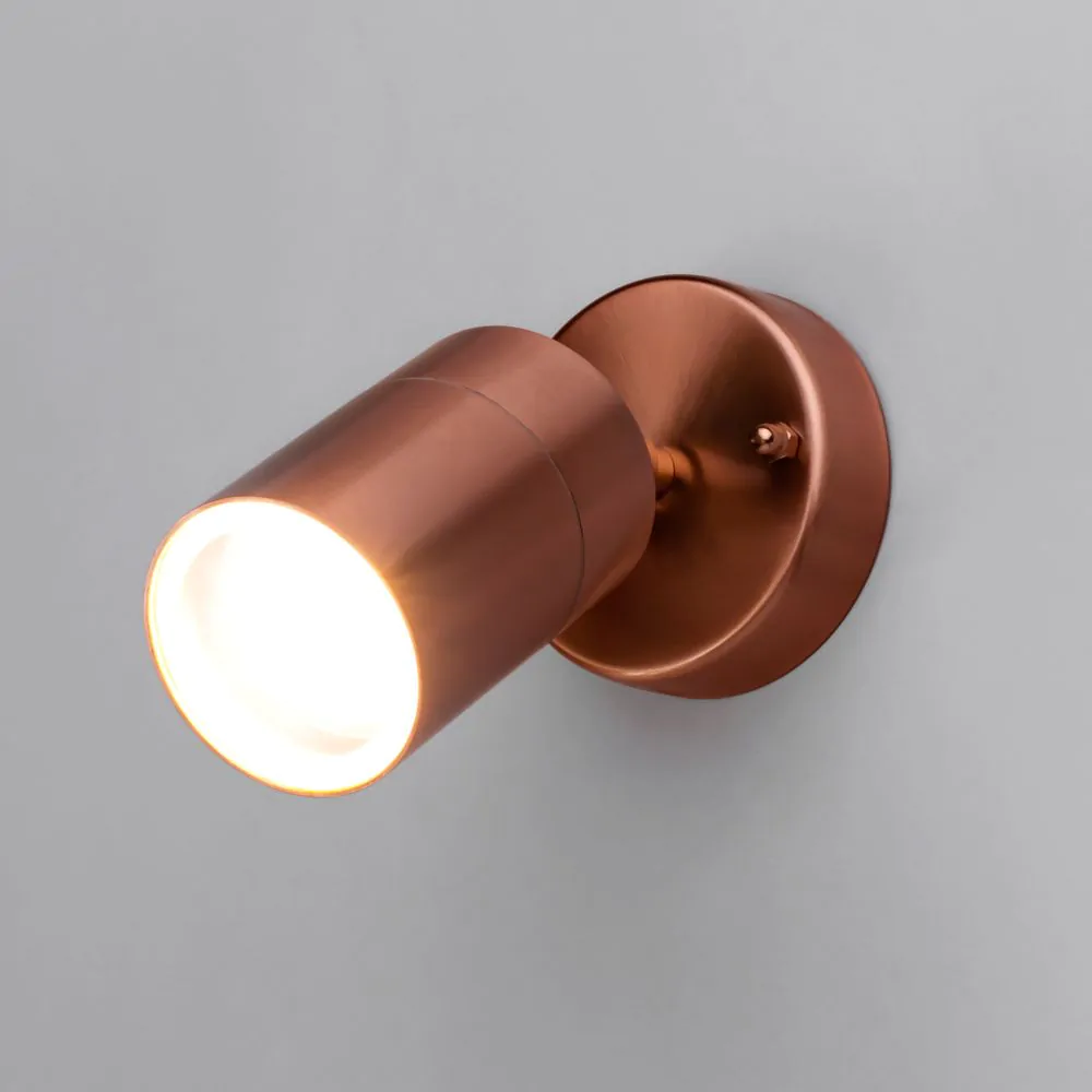 Bring a practical task light to your home with the Jared Single Adjustable Outdoor Wall Light. This outdoor light is able to be adjusted to your liking, with an adjustable head ideal for directing a practical pool of task lighting wherever you wish. The copper finish creates a vintage aesthetic among your arrangements – enhancing the natural beauty of your home’s exterior. This IP44 rated fitting is perfect for bringing an extra layer of security to your home, and looks stunning when paired together to accentuate any garden feature.