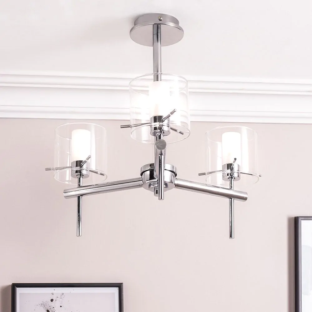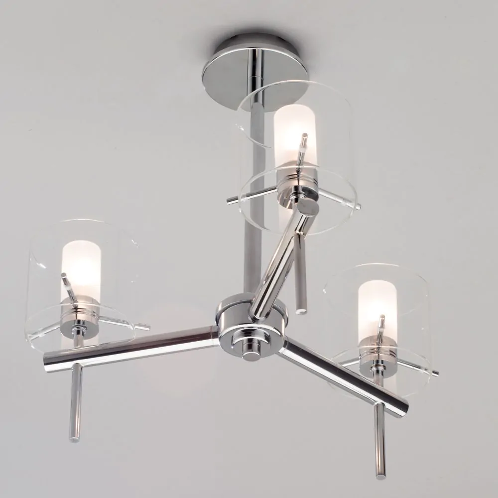 Our Jean Bathroom Ceiling Light with Cylinder Glass Shades brings a sleek, contemporary statement to your interiors, with a stylish chrome finish and an arrangement of gorgeous, modern shades that provide your interiors with a practical pool of ambient light. This sophisticated ceiling light is a wonderful choice for any home, with a semi-flush design perfect for styling in homes with lower ceilings. With an IP44 rating, this stylish addition can even be used in your bathrooms.